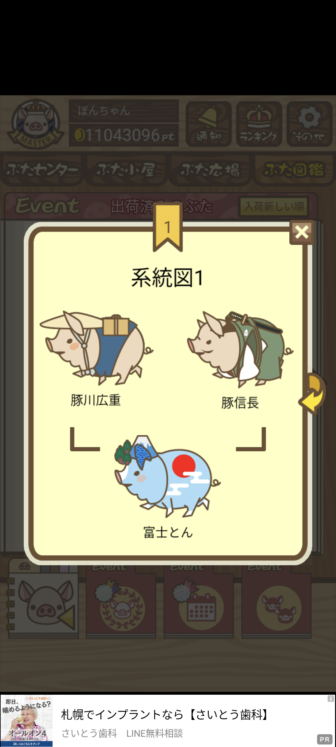 - 11/1から開始のイベントの豚さん