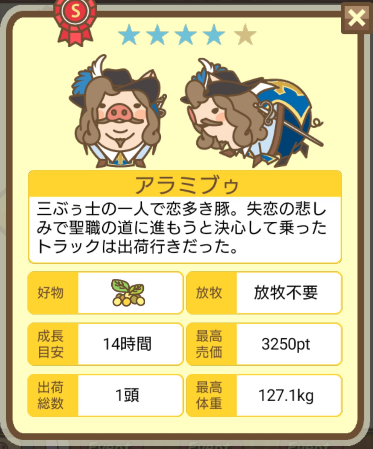 これは再登場ないでしょうから、確実に図鑑に登録して、あとwikiに載せる情報も集めておかないと…。 -- パン[tEHSV4HdvQ2] 2025/11/01 (土) 13:20:46- とりあえず、成豚できました -- お名前[CHbCg/SAtjM] 2025/11/01 (土) 20:43:57