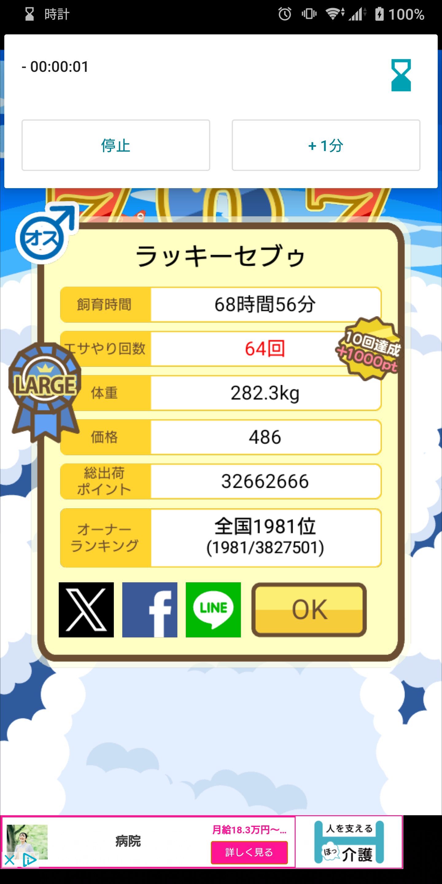 1時間以上になるように、育成してみますww