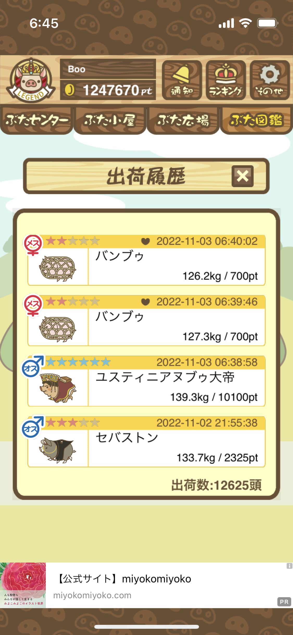 - 成熟するとブタヨノミコトになると思うのですがなにを心がければいいですか?多分1回目高級MIX食べちゃったっぽいんですけど -- 高橋たかし[WURqUaf8MJQ] 2025/11/09 (日) 10:43:23