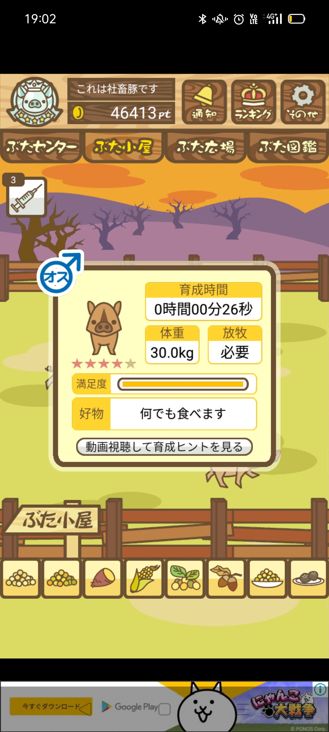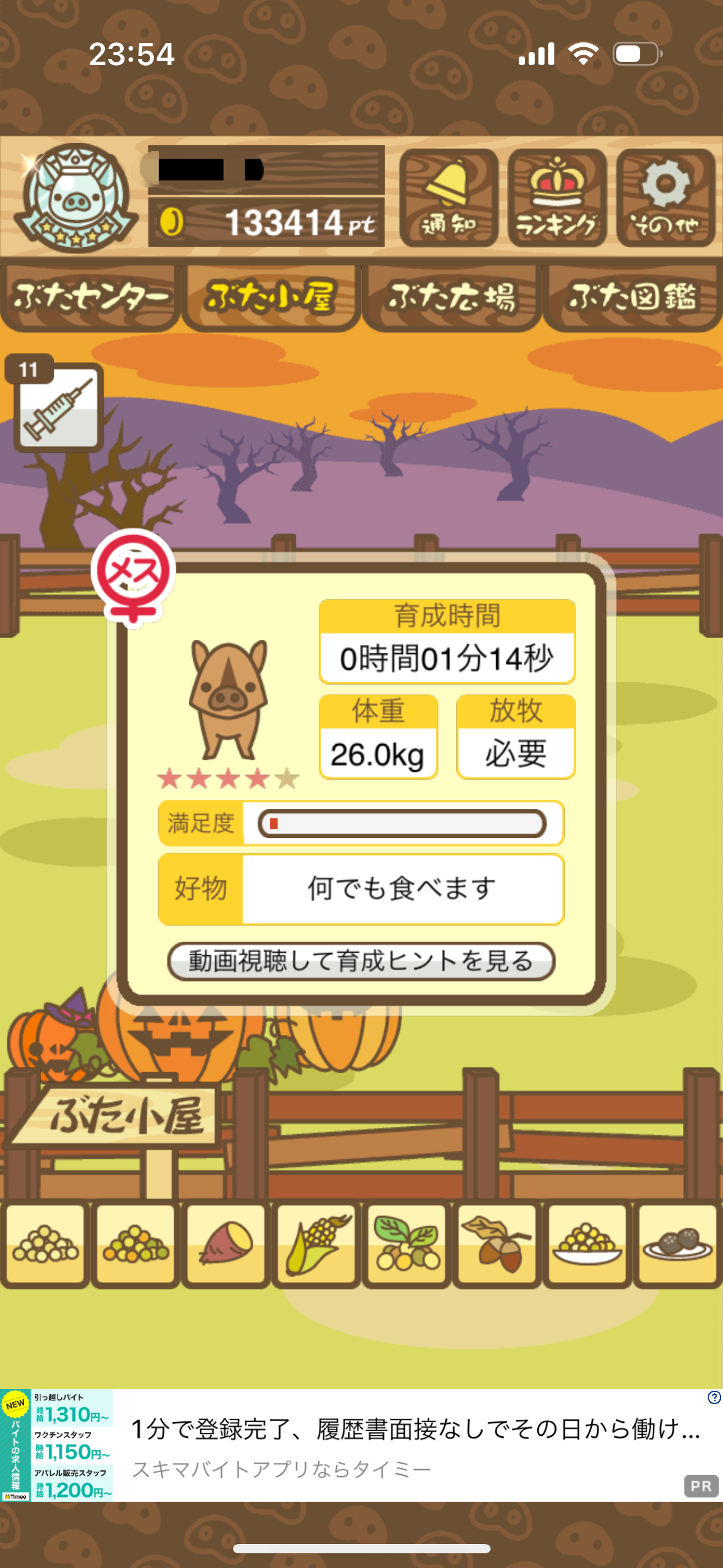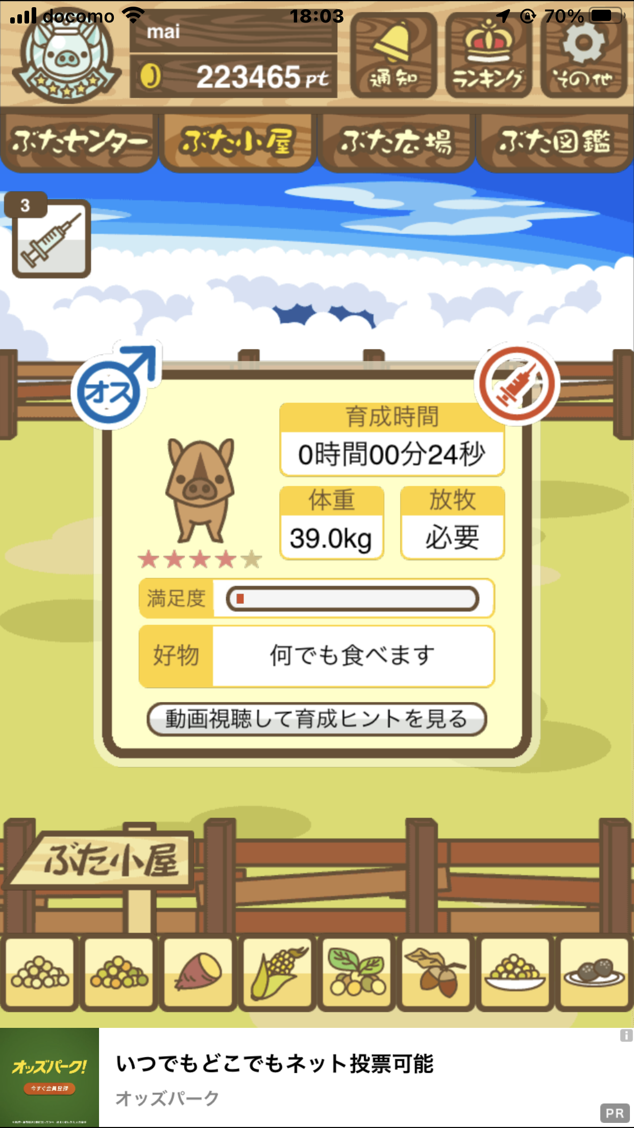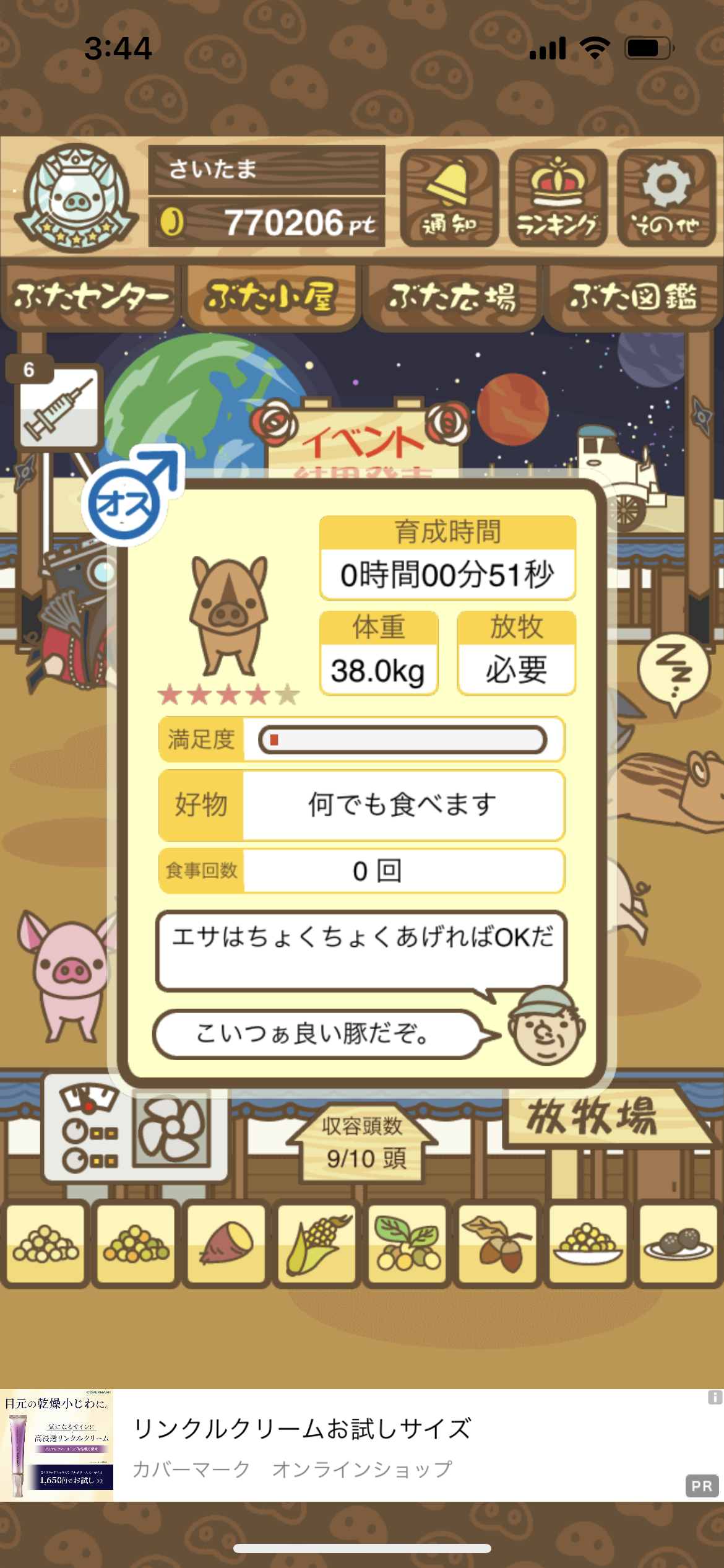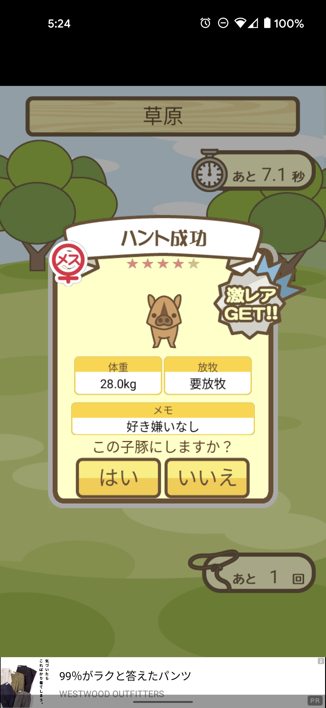 - 【追伸】それまで3回ほど18時台で挑戦しましたが、イノシシは出たが「要放牧」は出ず。もう少し遅い時間で挑戦。餌回数も少ないので安心して寝れます笑 -- 名無し[fnuFTd0QgU2] 2020/06/29 (月) 20:17:51