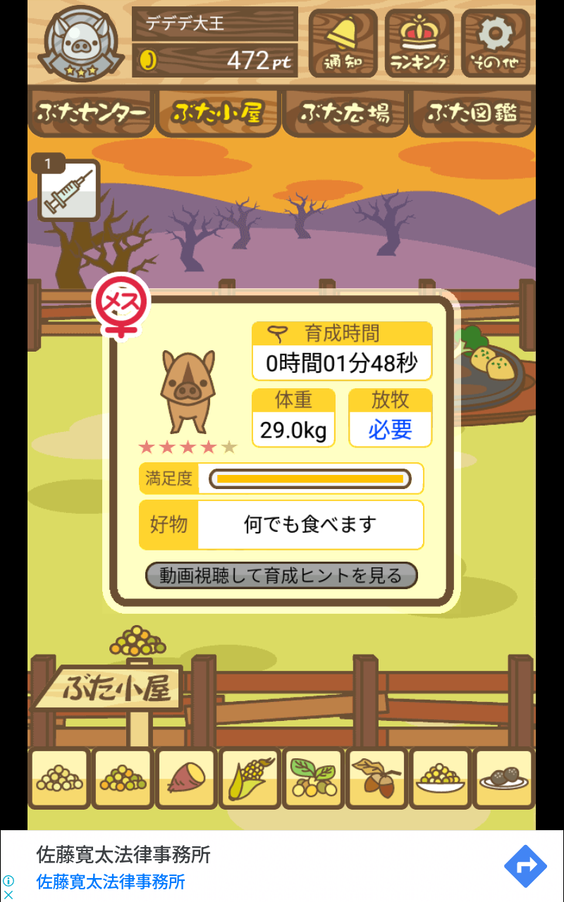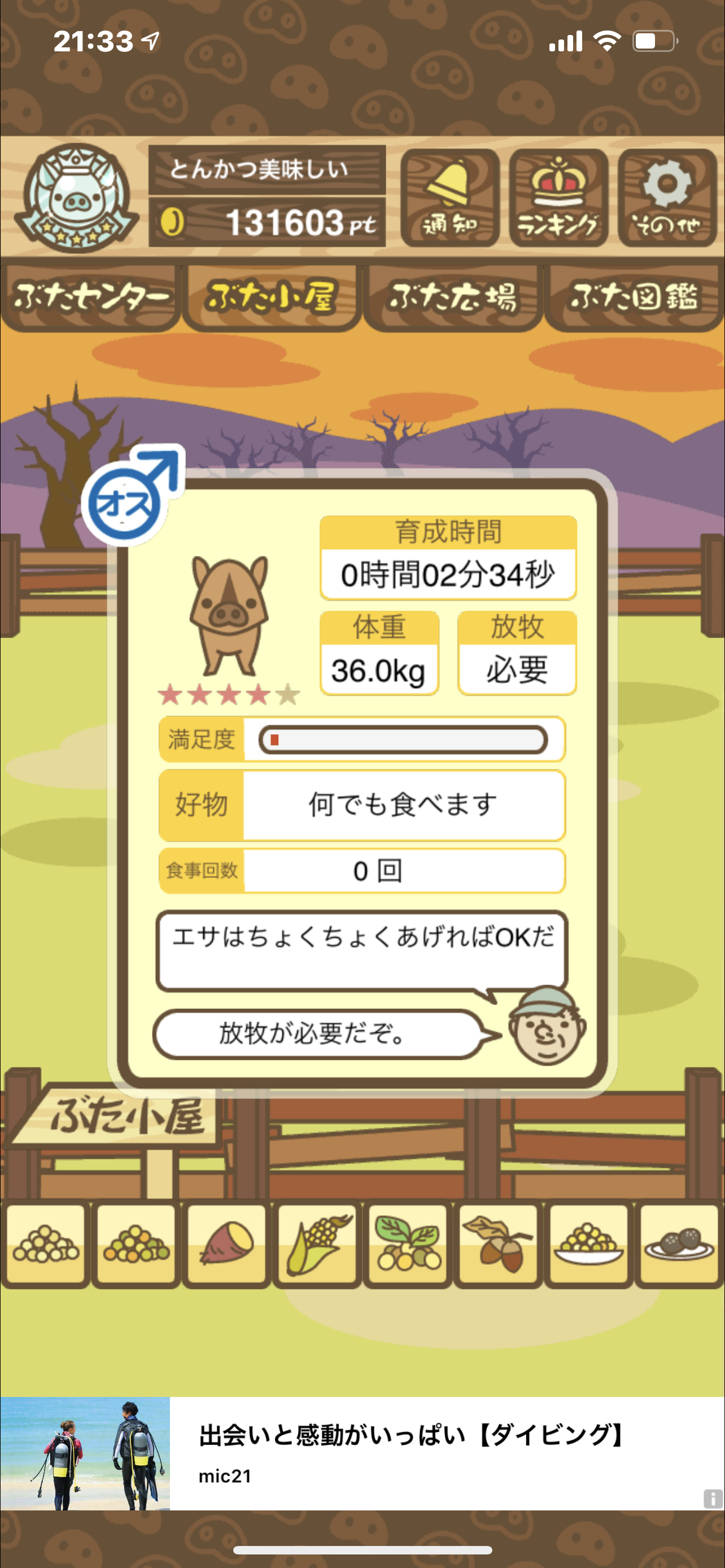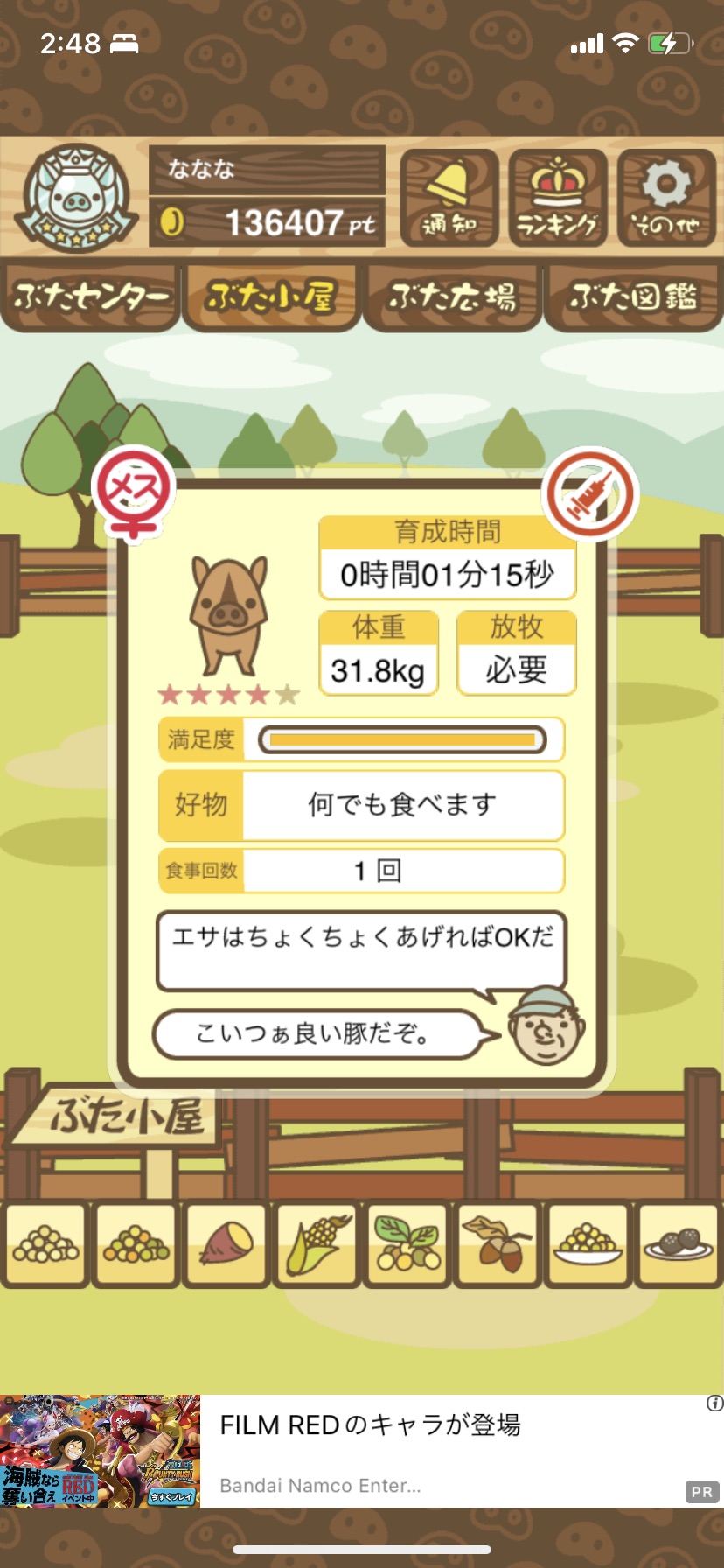 - エサやり1回のみ、2回のみ、と失敗し、3回のみで放置したら、無事にアカカワイノシシになりました。 -- ぶー[u6JbDiQbeVQ] 2020/04/19 (日) 00:11:54