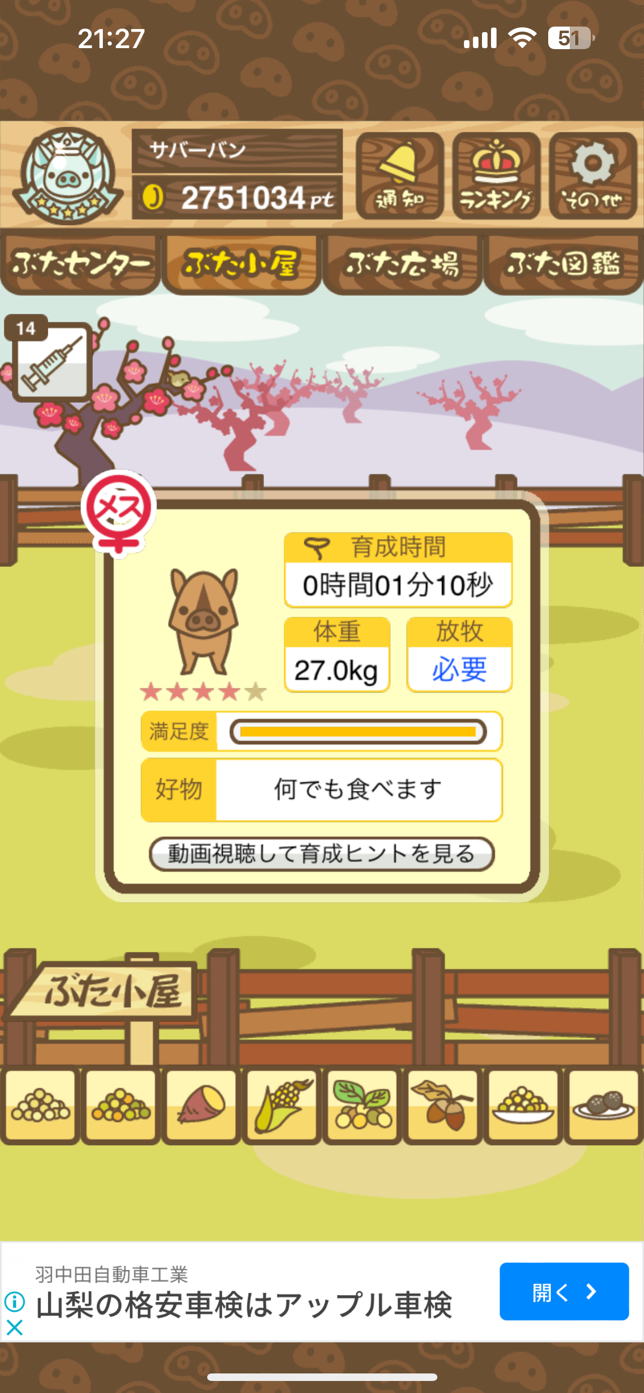 大事に育てます!🐷 -- トン子[iswGN4AH6qc] 2022/10/22 (土) 22:04:23