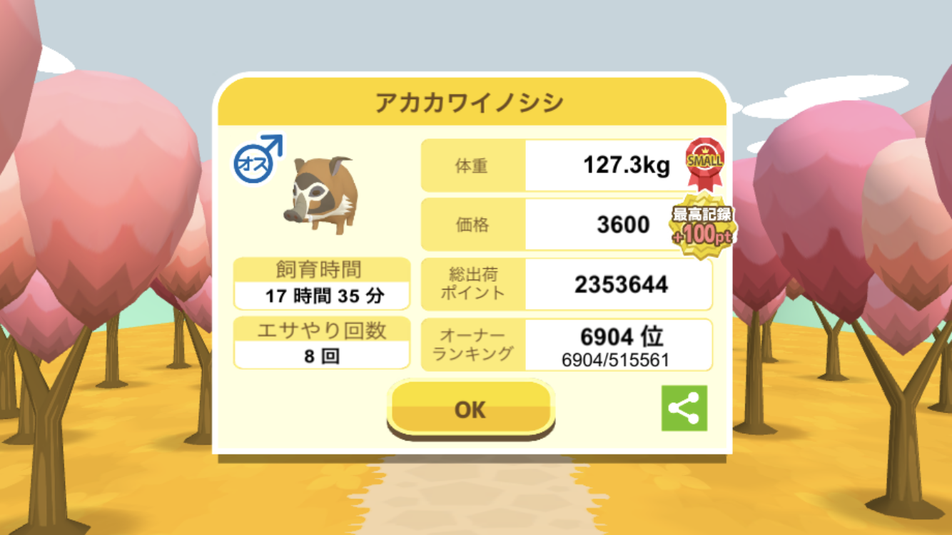 出没時間帯とかを気にした事がありませんでしたが、プレイ日数570でこの子が4頭目です。意識した事なかったので驚きです。笑 -- 藤田さん(偽名)[IsSTbbbYJiU] 2023/11/08 (水) 01:01:15