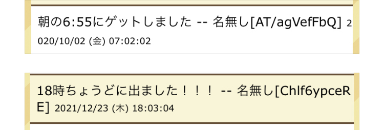 - 深夜3時15分にゲットしました!! -- つる[27fmJaCyu2U] 2021/02/10 (水) 03:26:43