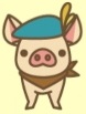 羽のついた緑色の帽子を被った子ぶたが山林レアにいる。