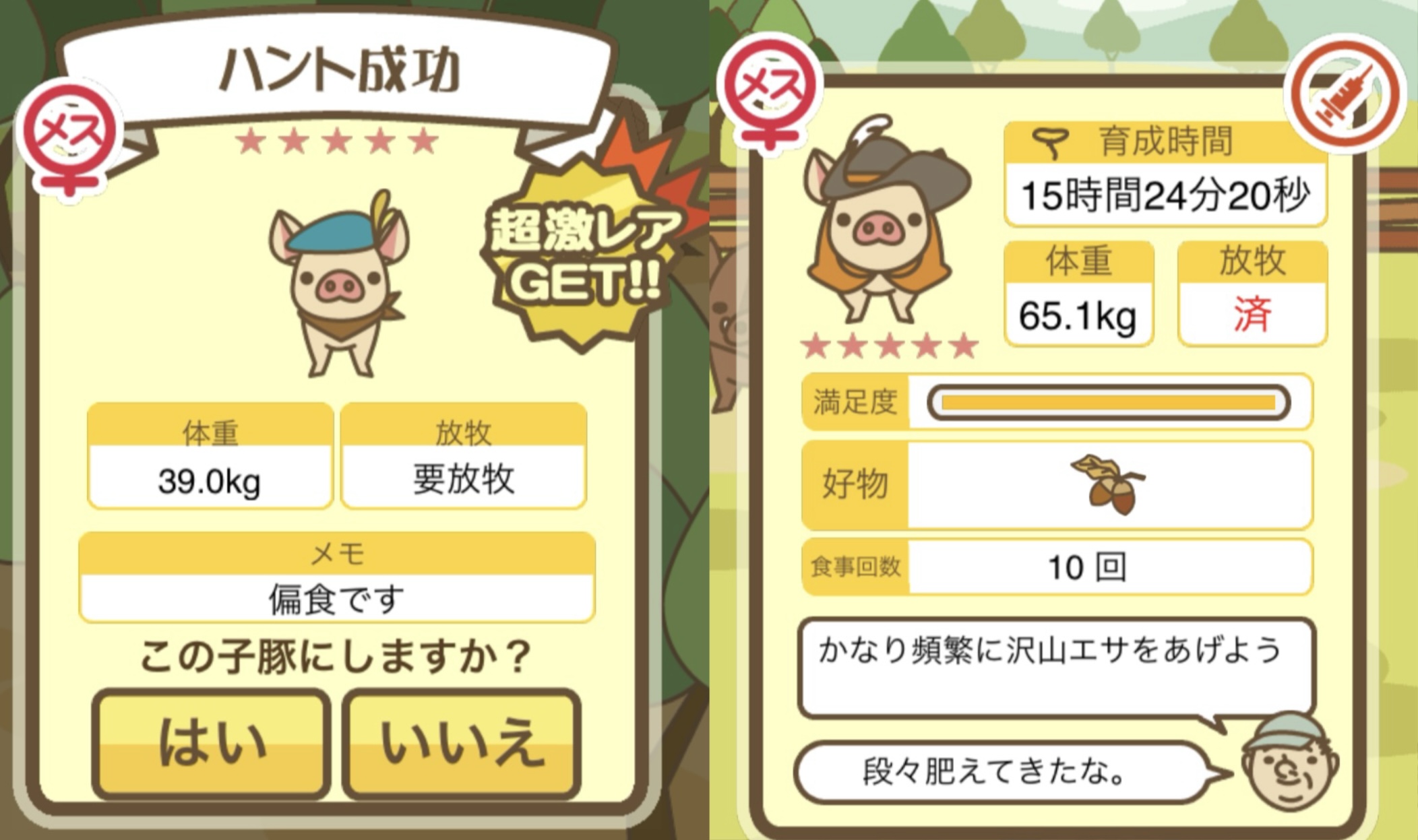詳しくは 子ぶたの成長4段階の詳細 を参照。