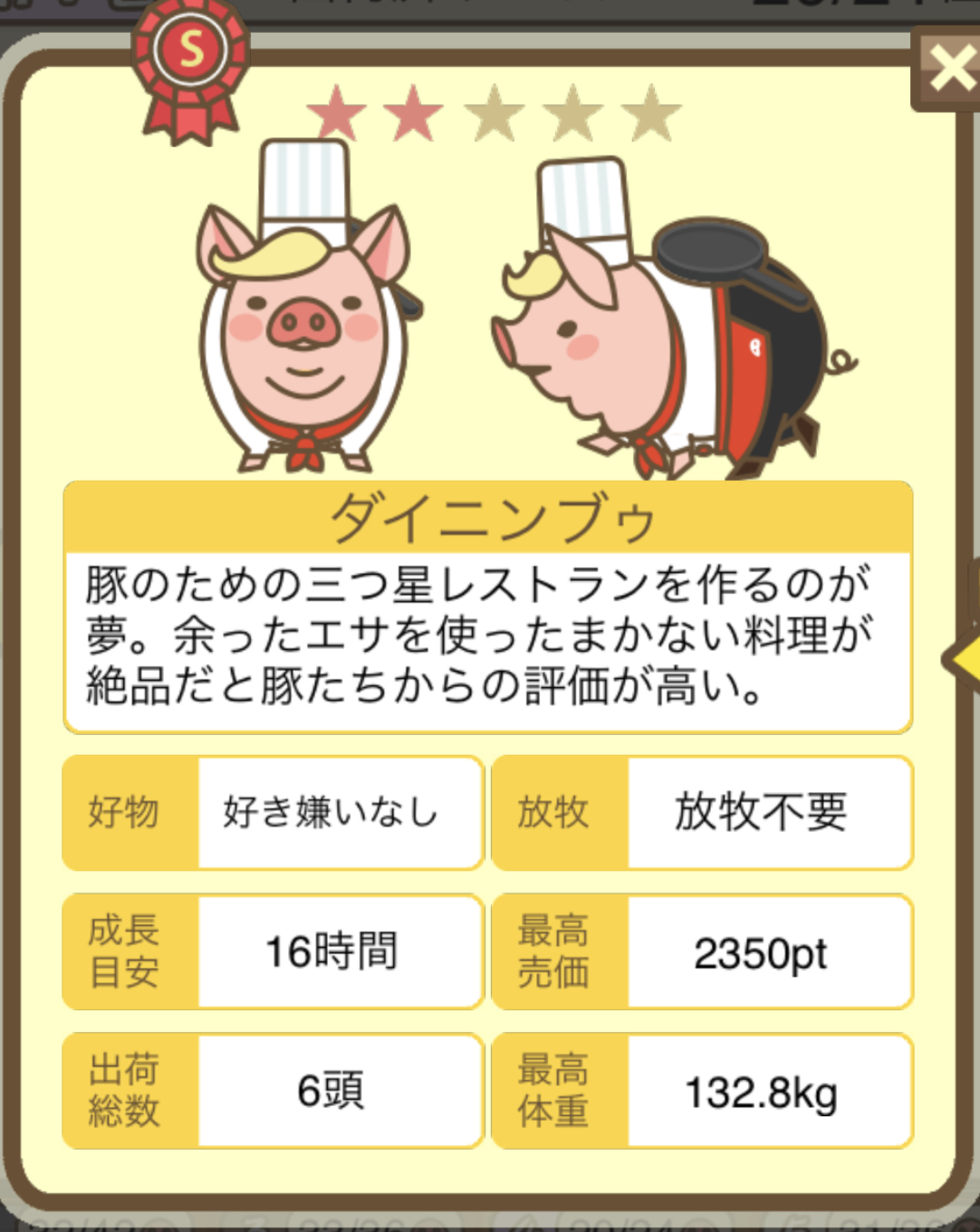 | レア度 | ★2 | 子ぶた色 | ピンク |