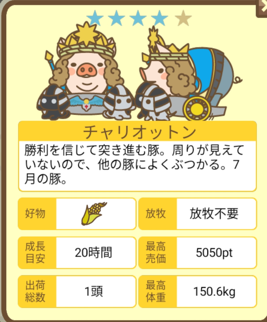 | MIX | 勝利を信じて突き進む豚。周りが見えて いないので、他の豚によくぶつかる。7 月の豚。 |