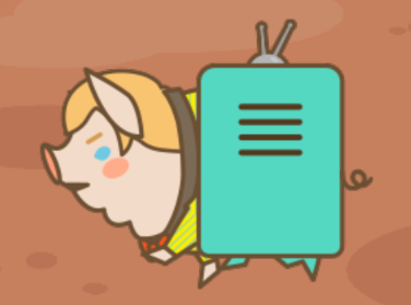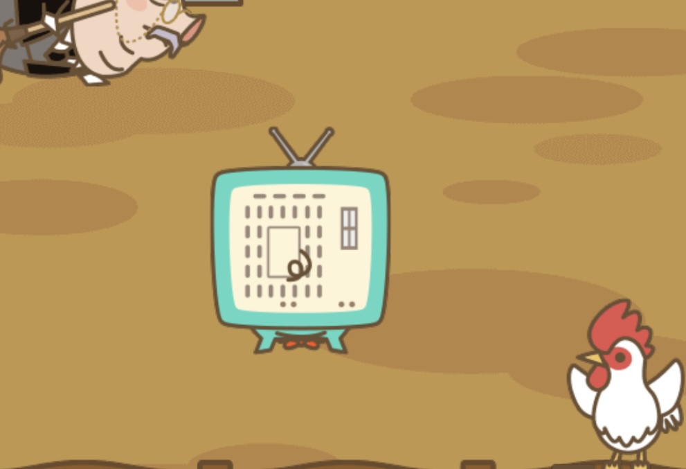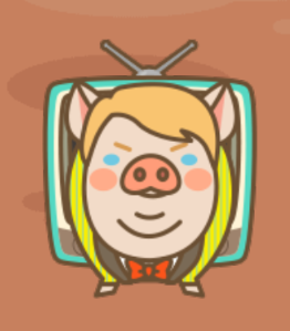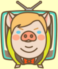 | MIX | 豚たちにテレビへの関心を向けさせよう とテレビから飛び出してきた豚。キャス ターらしい。11月の豚。 |