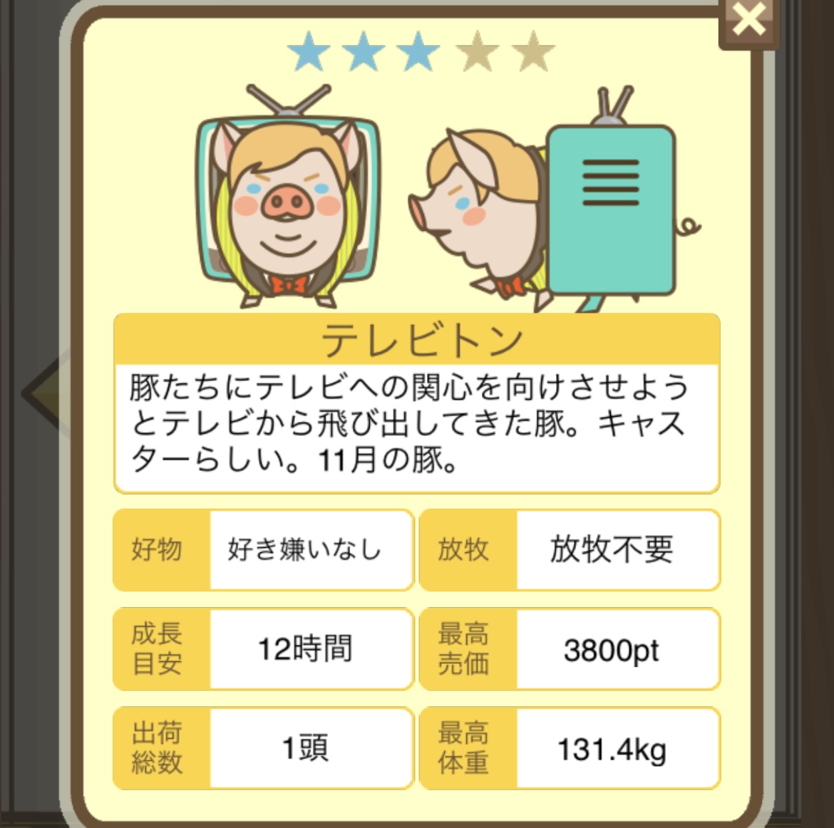 | レア度 | ★3 | 子ぶた色 | 肌色 |