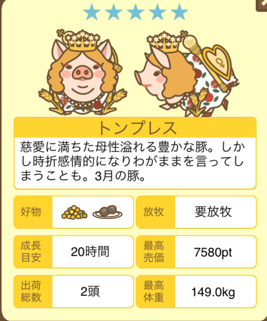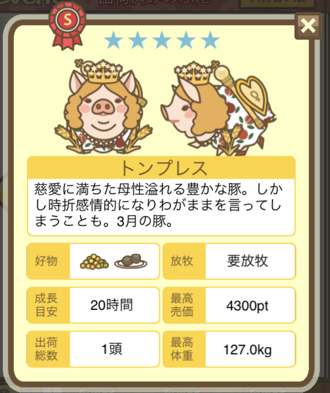 | レア度 | ★5 | 子ぶた色 | ピンク |