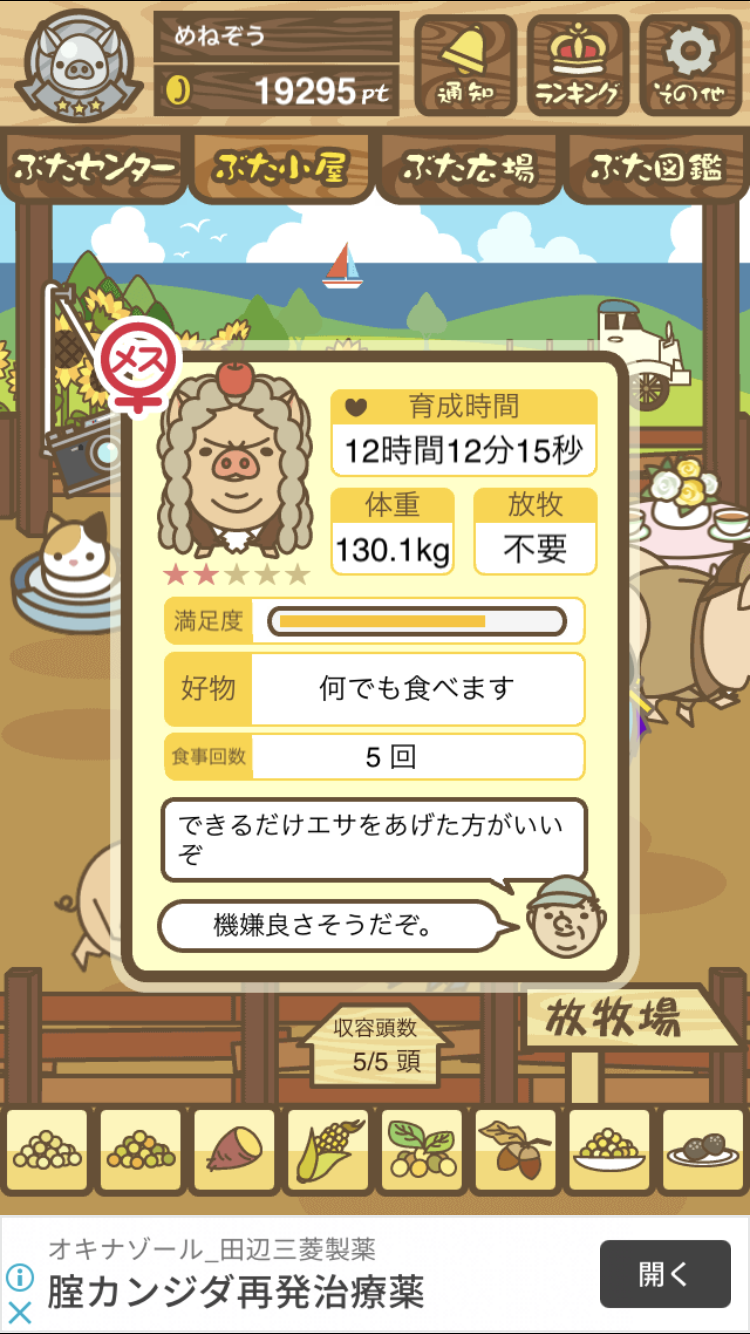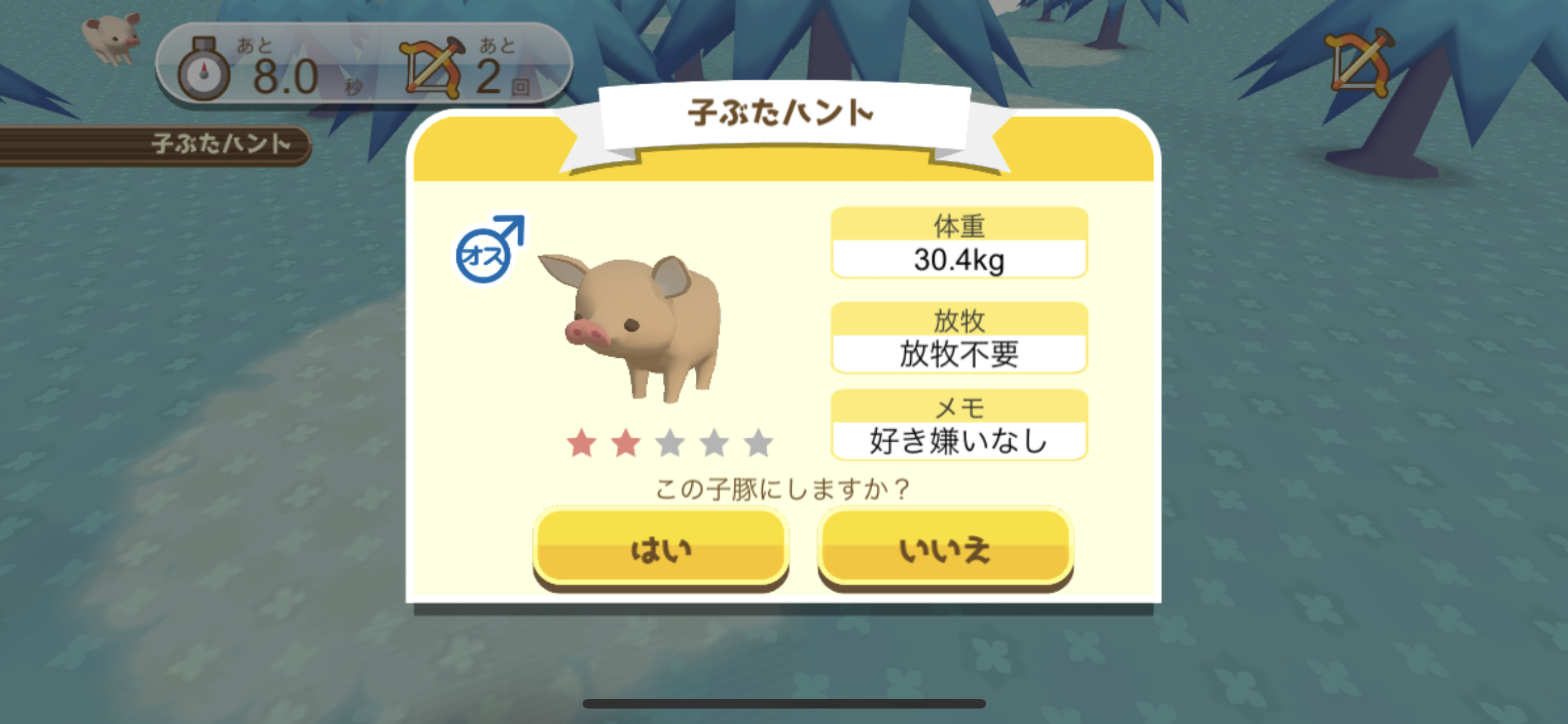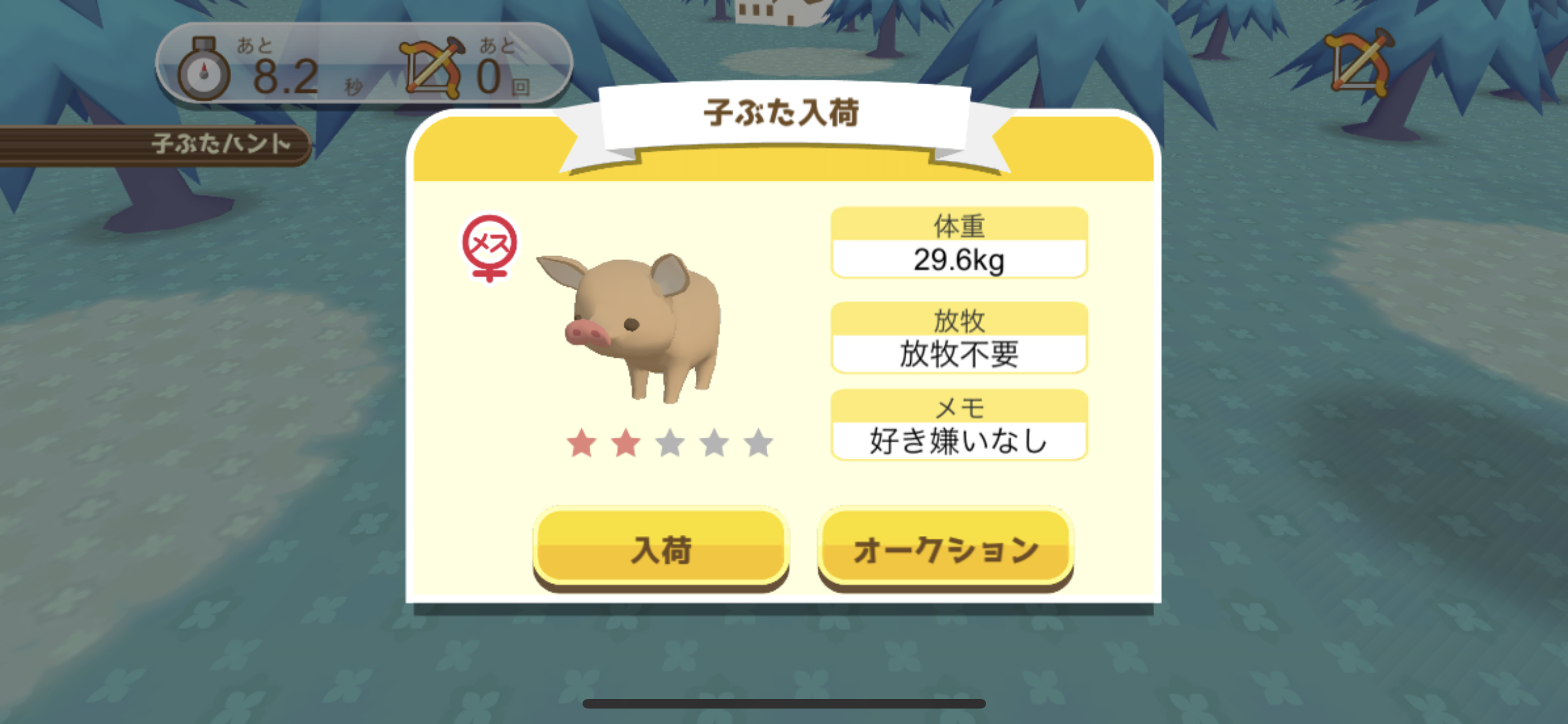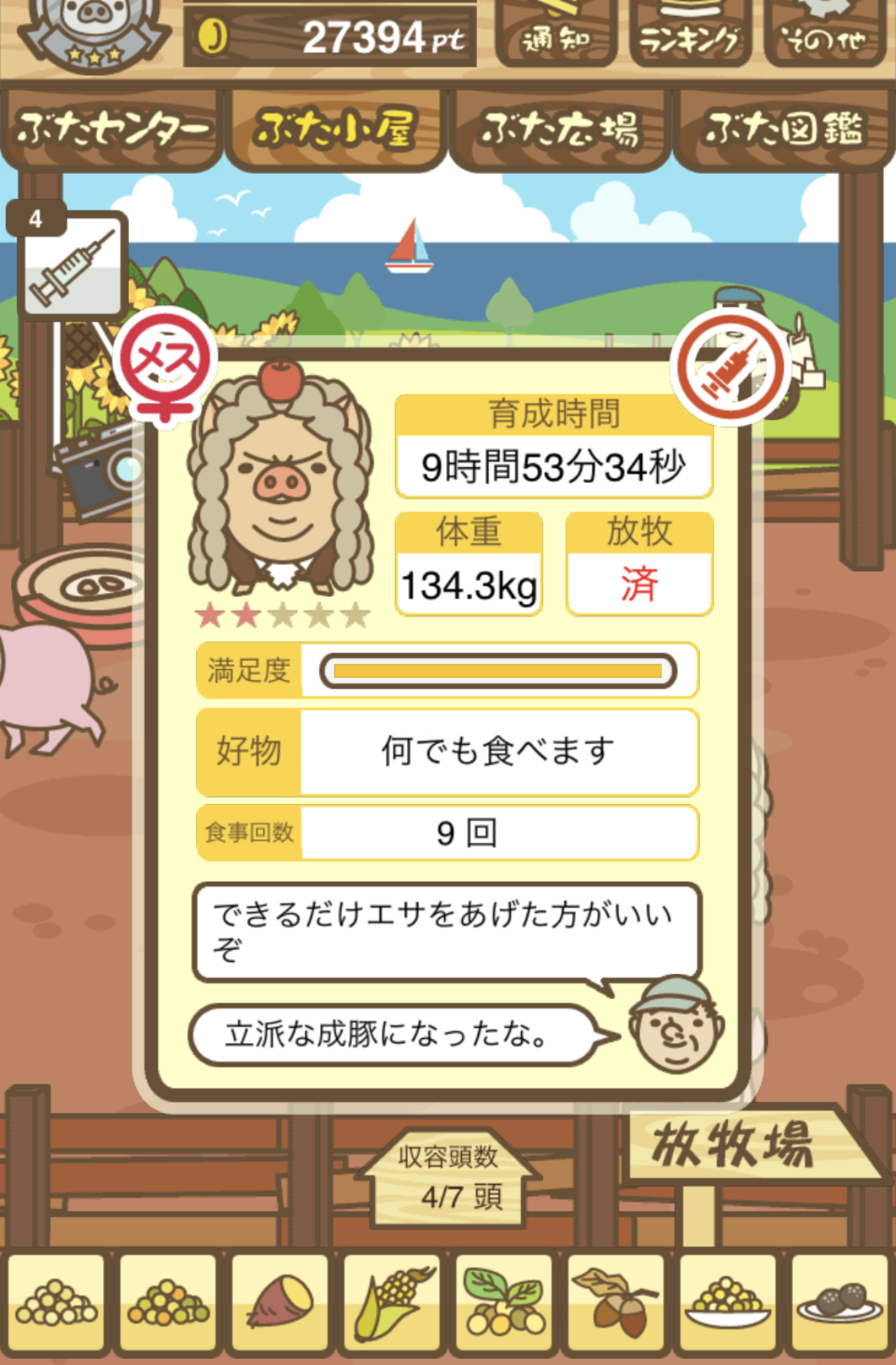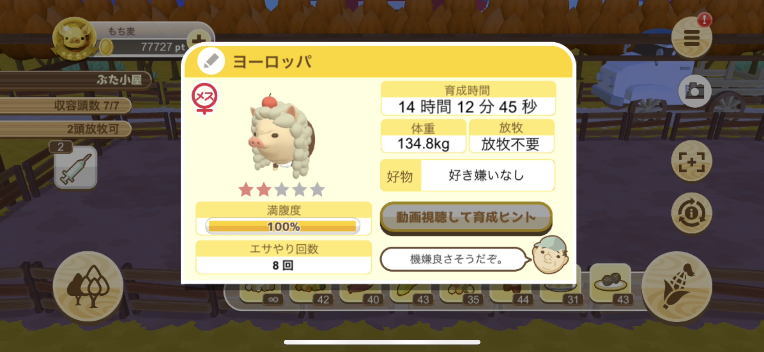 成長時間が12時間の割にエサを5回もあげなければならないので、寝る前に入荷すると星2のくせにしれっと雑種(ベージュ)になるので注意。