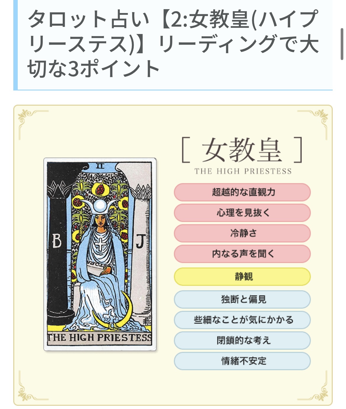 元ネタはタロットカードの大アルカナのⅡ.女教皇。