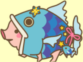 | MIX | 魚になれは出荷を免れると思っている。 大好きな魚マスコットはリボンで繋いで いつも一緒。2月の豚。 |