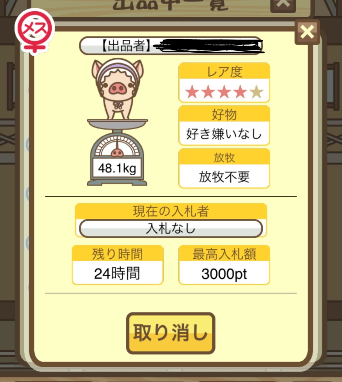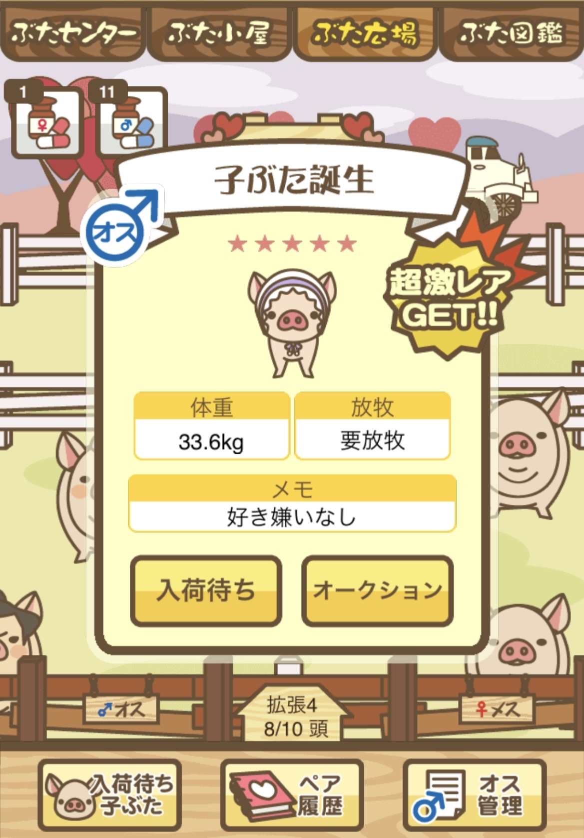 | MIX | 品種育成を極めた完璧なオーナーの前に 現れる気高い豚。育て上げてくれたオー ナーに尊敬の気持ちを持つ。 |