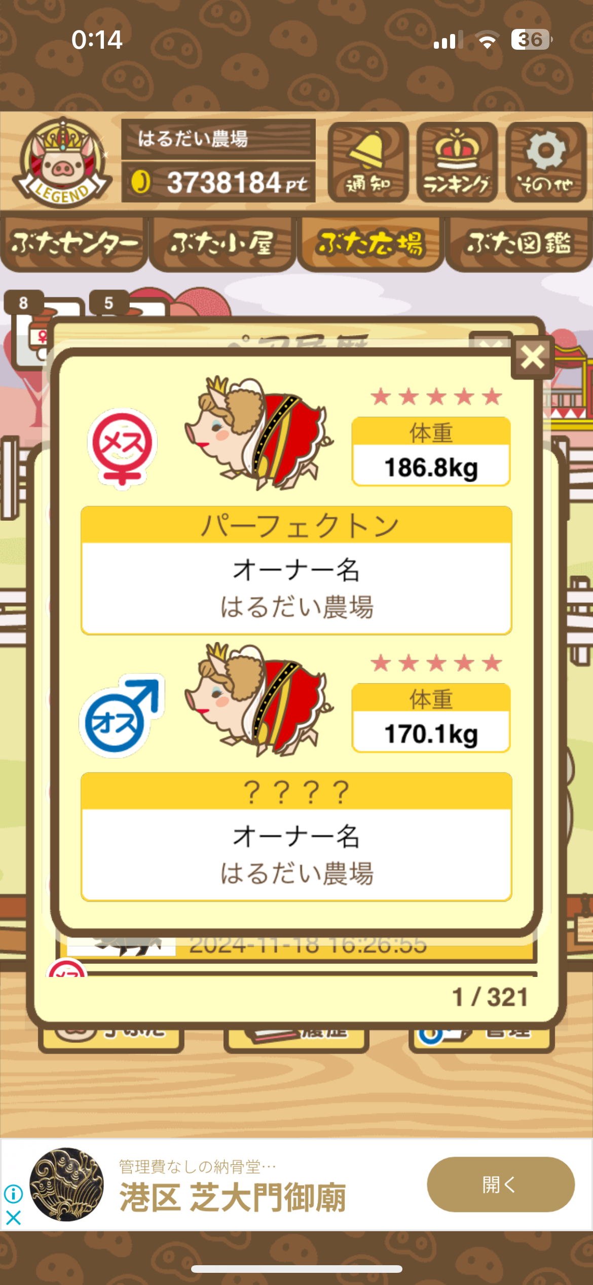 ぶた図鑑(イベントハント以外)を全てコンプリートすると新しく図鑑の第6巻に追加されるぶたさん。