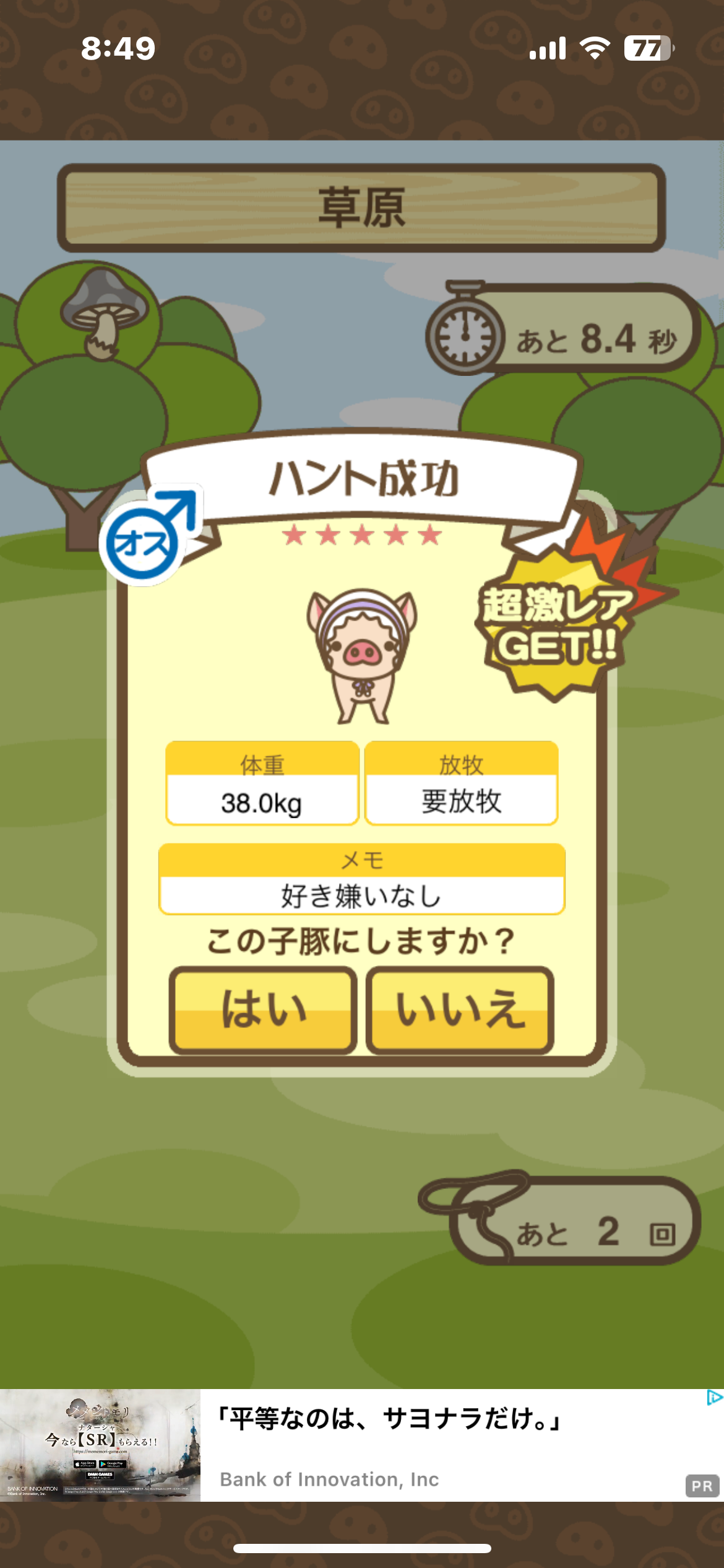 かわいいフリフリを被った子ぶたが草原レアにいる。