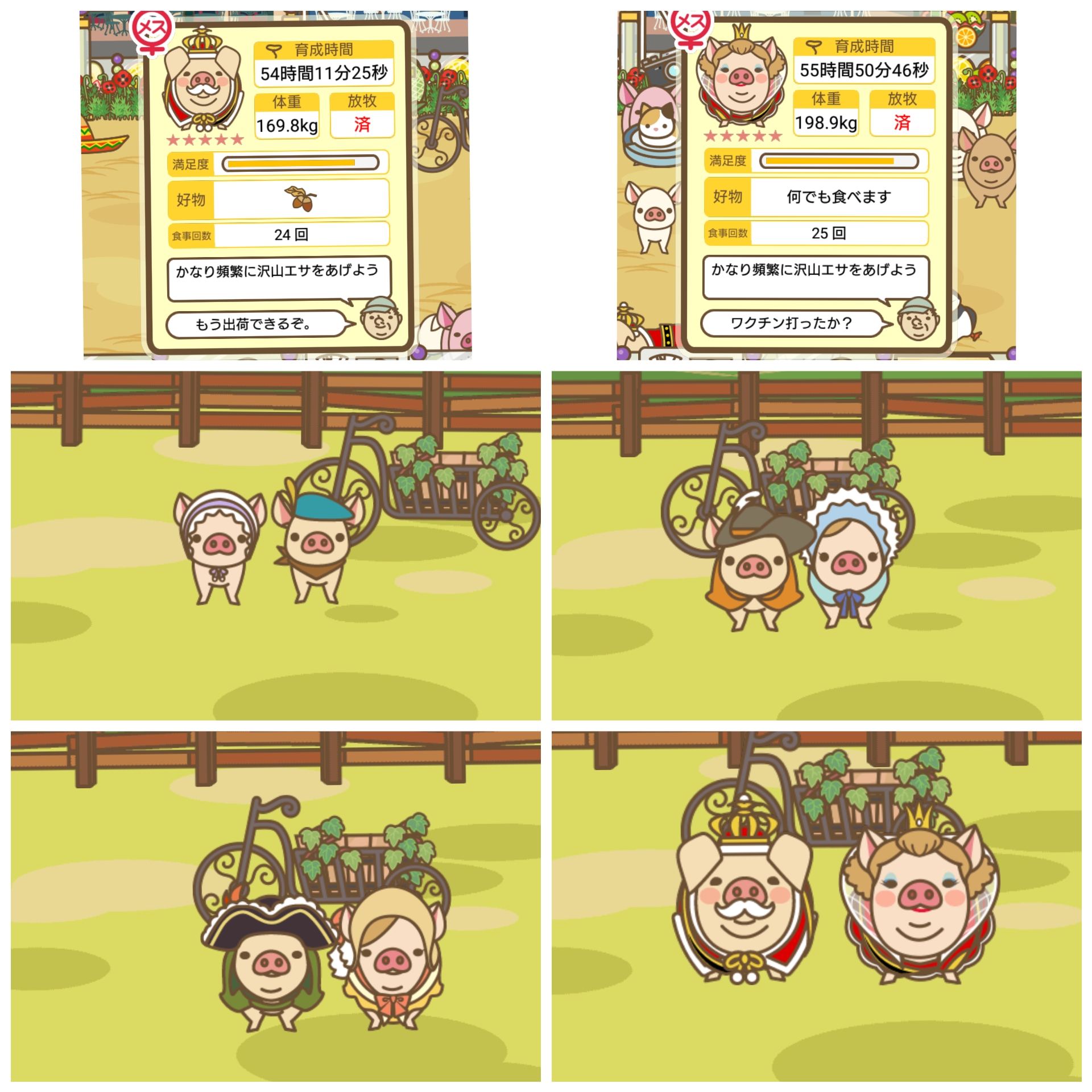 詳しくは 子ぶたの成長4段階の詳細 を参照。