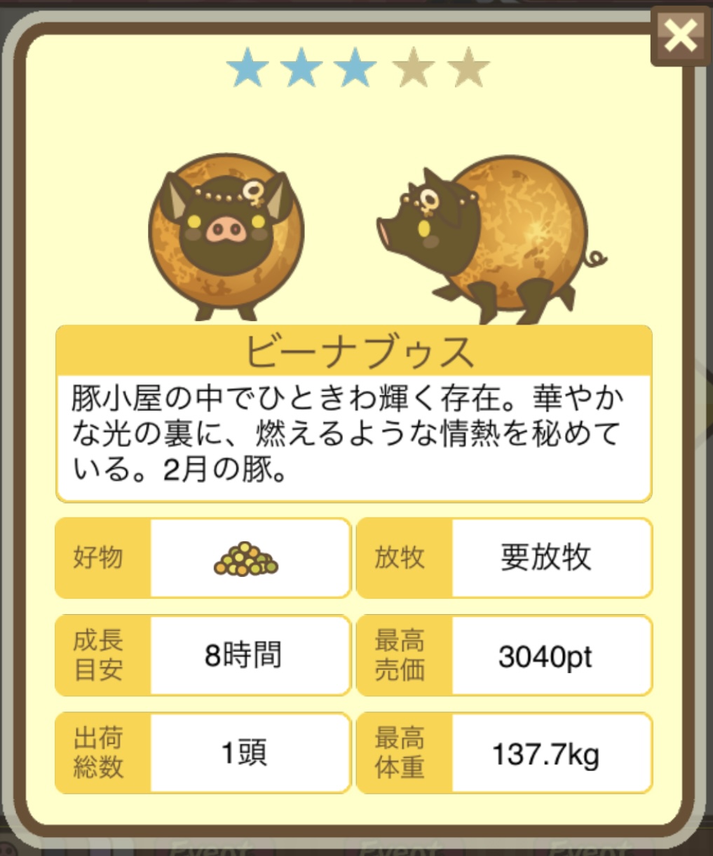 | レア度 | ★3 | 子ぶた色 | グレー |
