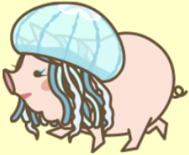 | 3D | クラグ好きが高じてファッション に取り入れるようになった。クラ ゲの帽子は素材もこだわって作っ た逸品。7月の豚。 |