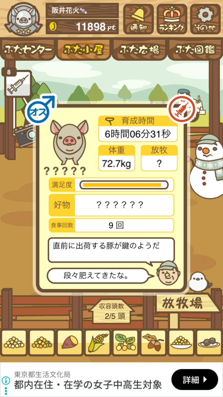 肥育が間に合わなさそうだったら、直前出荷が整うまでブタビデ王候補を放牧場に放置して成豚を先延ばしにしよう。