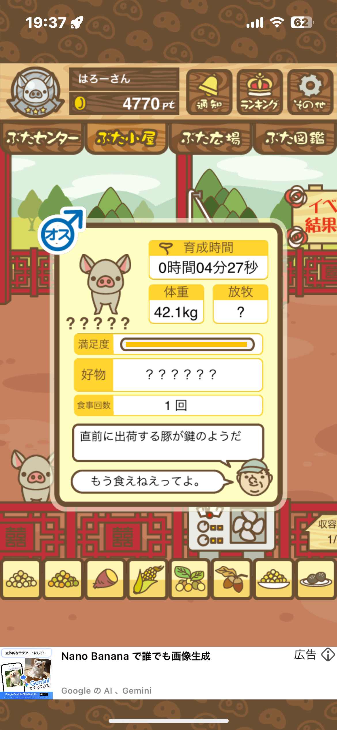 ただし、後述の出世の条件があるので雑穀ベジMIXを食べさせた方が良いかも。
