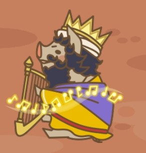 成豚すると、特別なモーションとして竪琴を弾いてくれる。