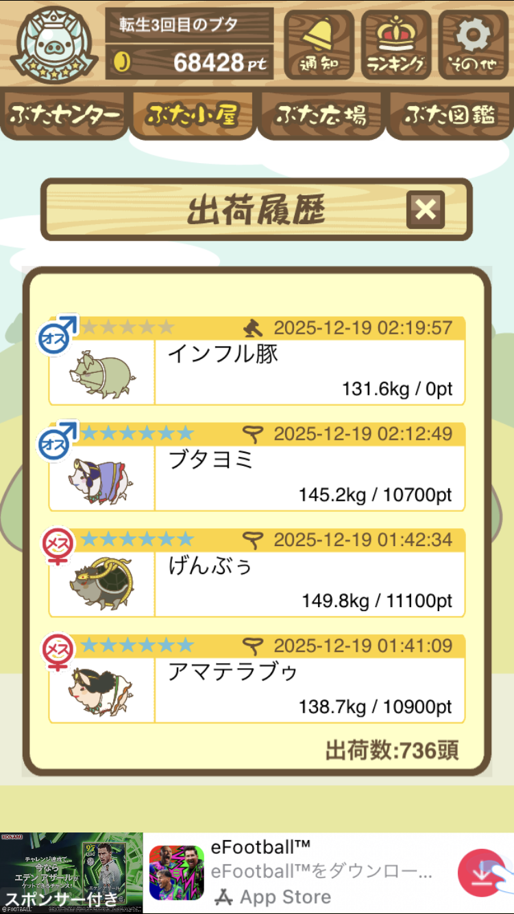 - 成豚時に神秘の数字が必要らしい