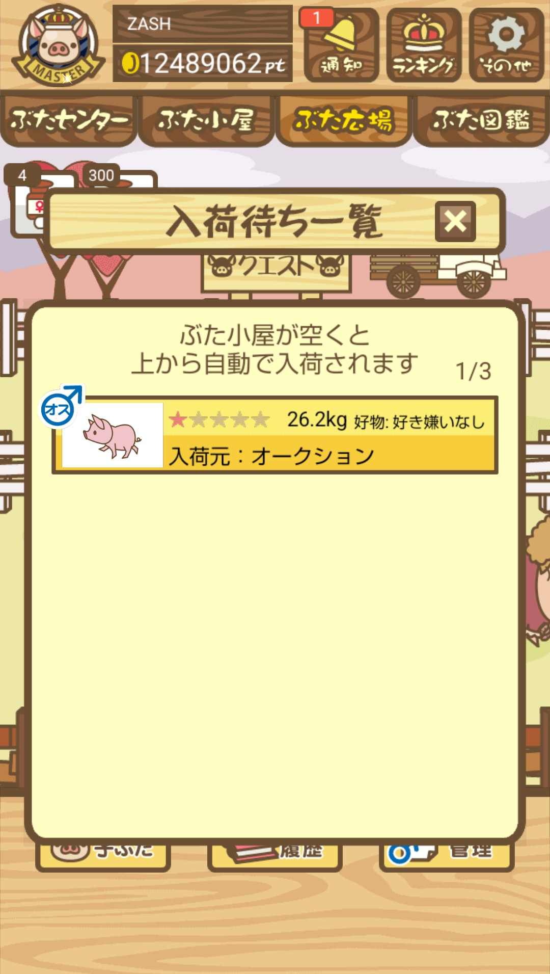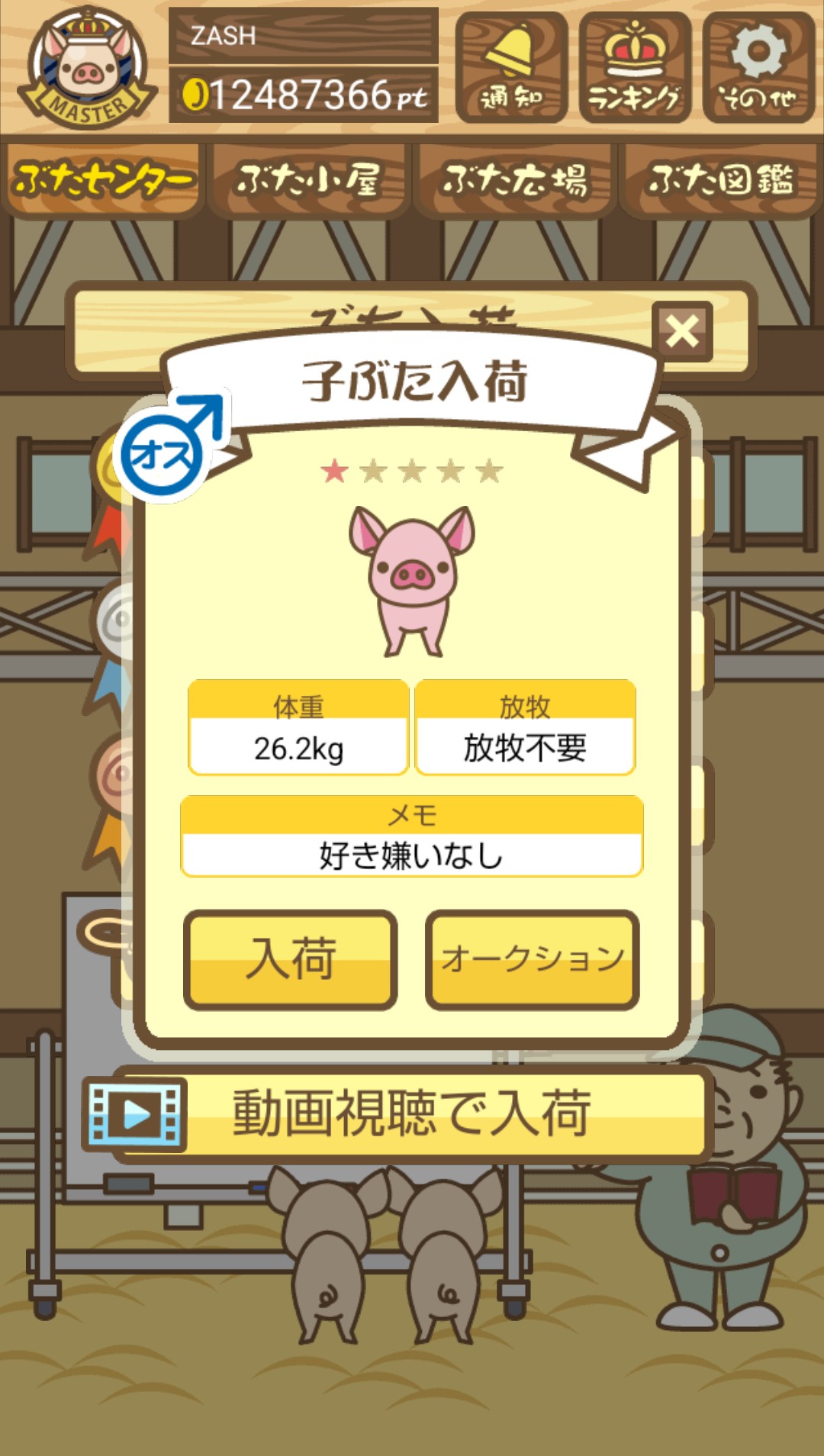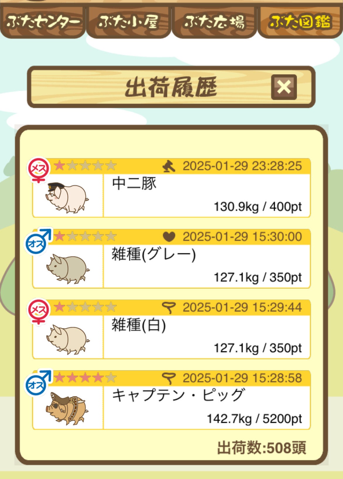 育成時間の早い とんかつ・中二豚 のオスでも適当に落札して育成しよう。