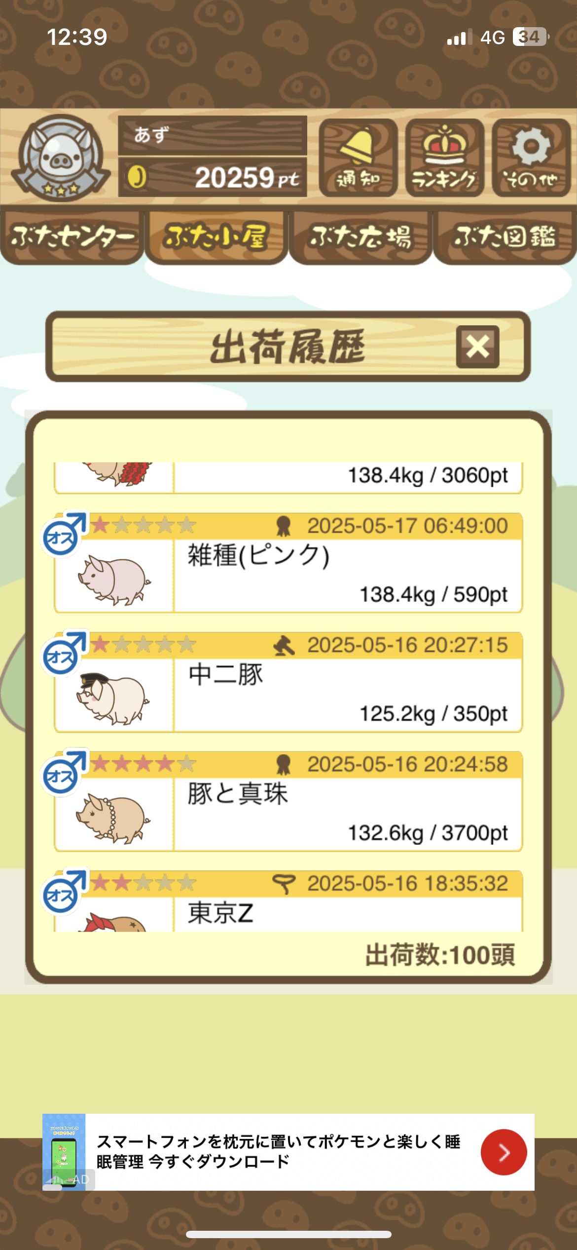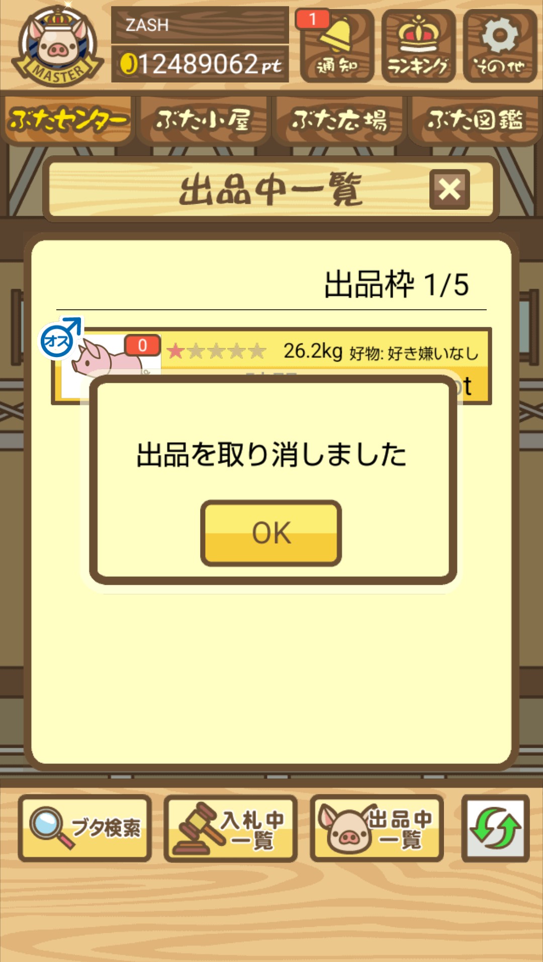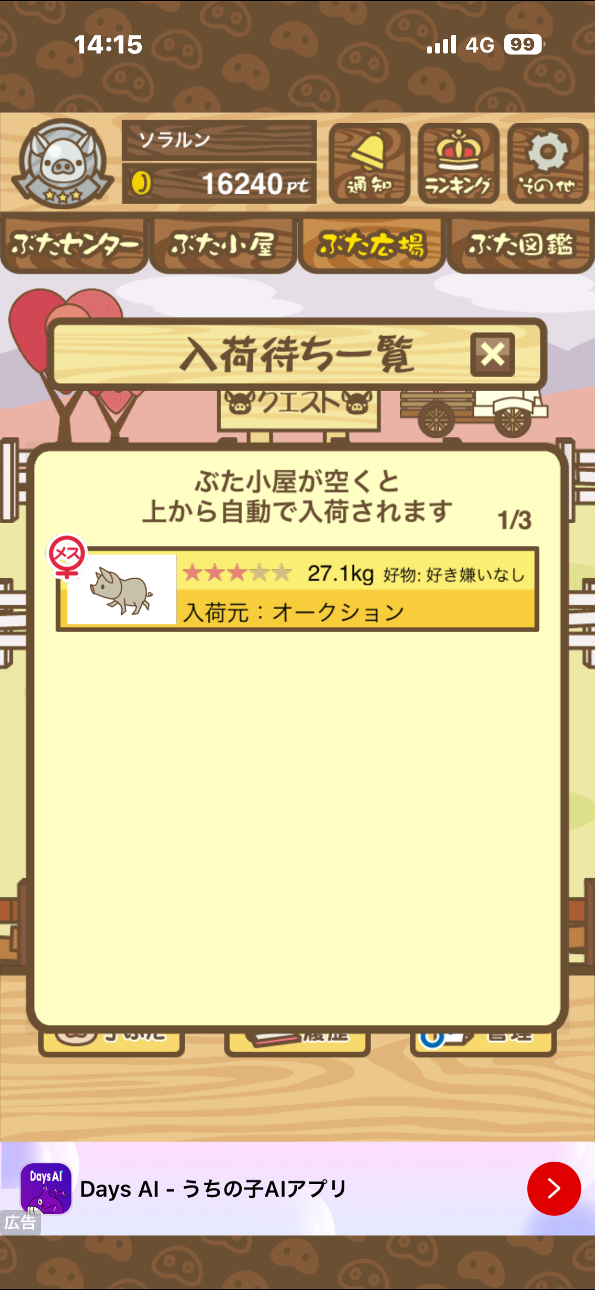 育成時間の早い とんかつ・中二豚 のオスでも適当に落札して育成しよう。