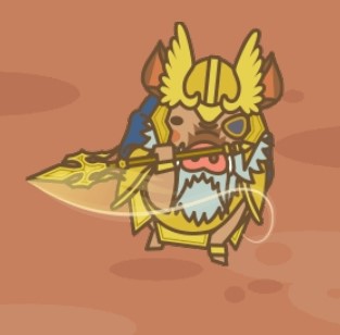 オーディンと同じ隻眼に長い髭なのはもちろん、オーディンが戦場で身に着けるという黄金の鎧兜に青いマントを装備している。