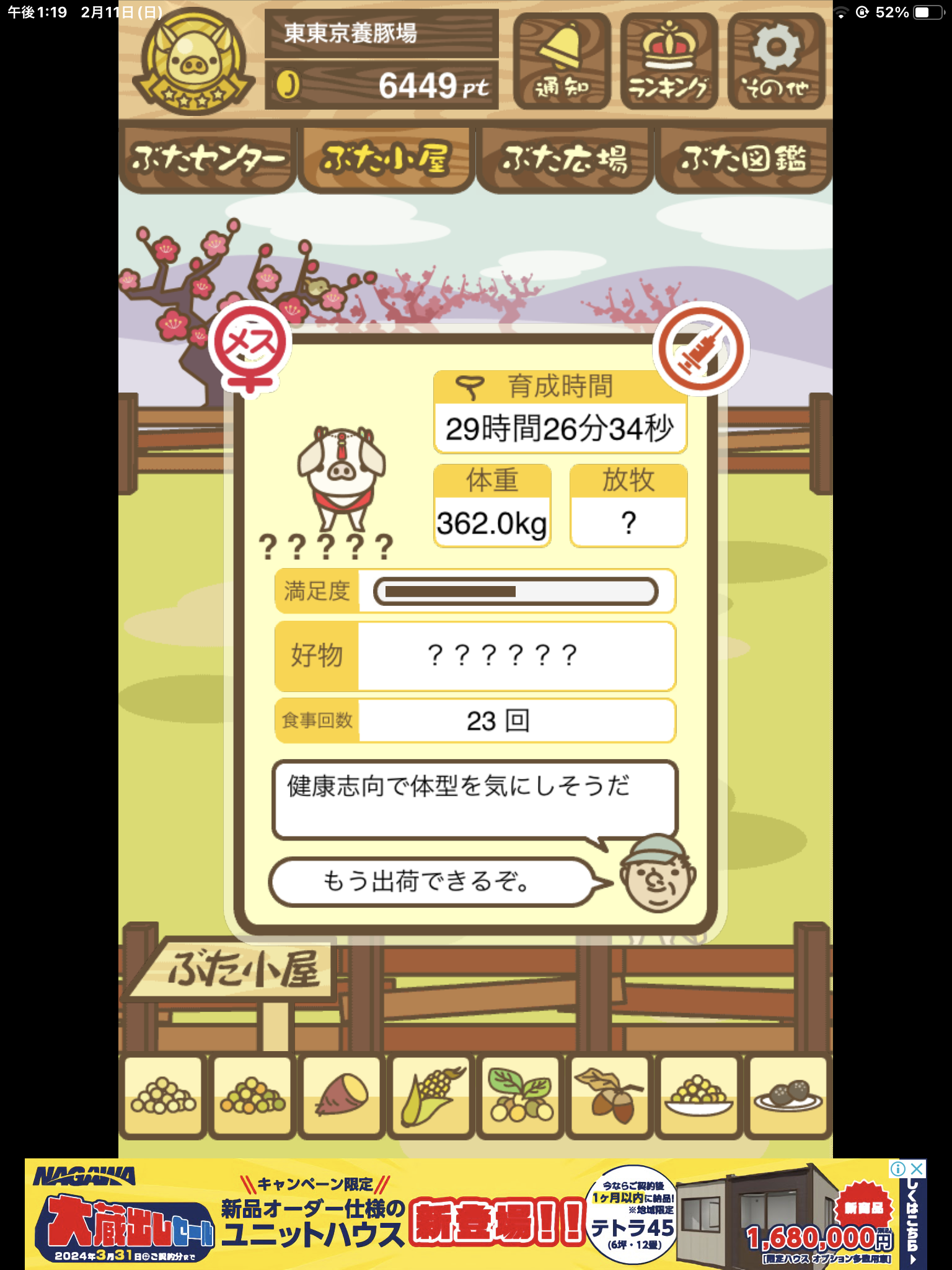 ぶた小屋/放牧場 のどっちで成豚するかは気にしなくて大丈夫。
