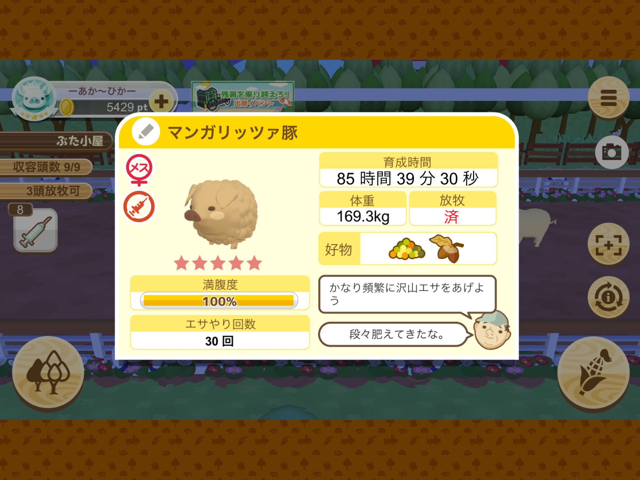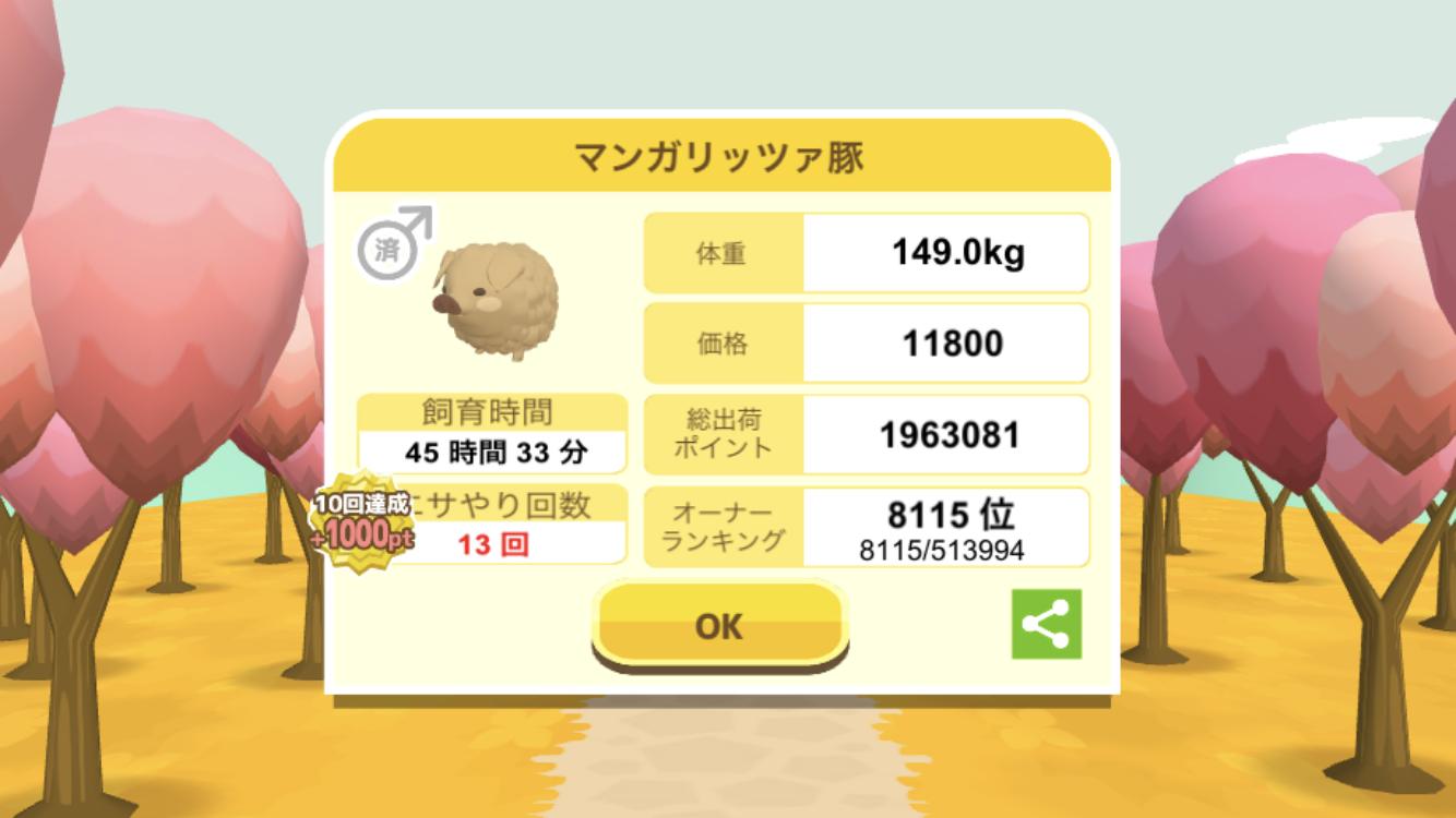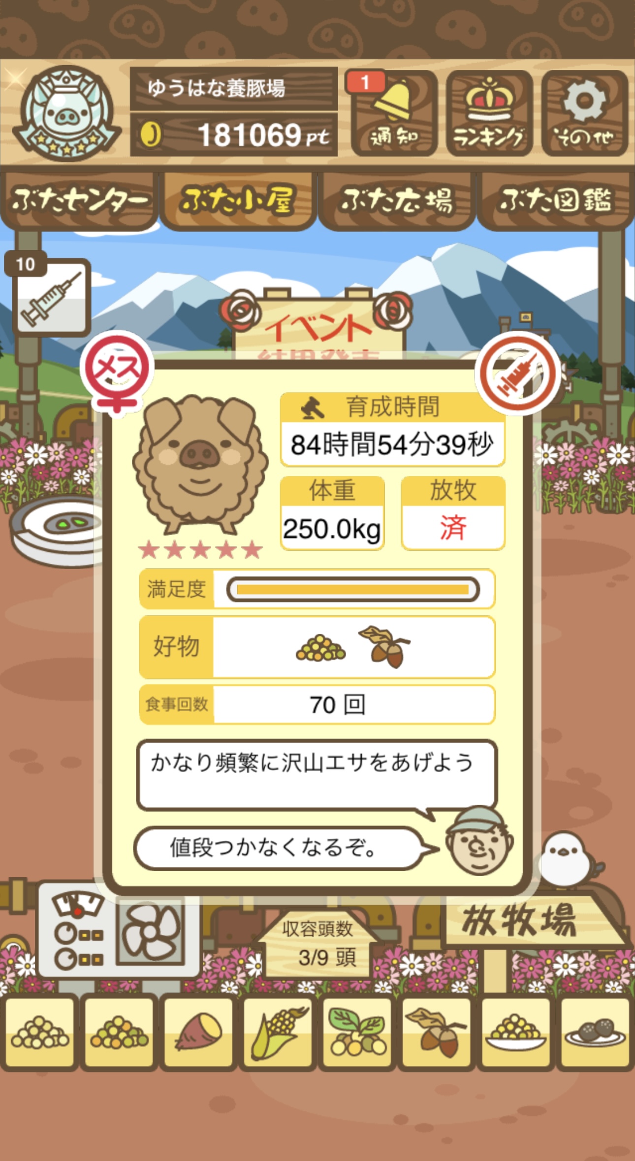 なお、もし図鑑コンプ済なら 更に基準出荷ptが高いぶた もいる。