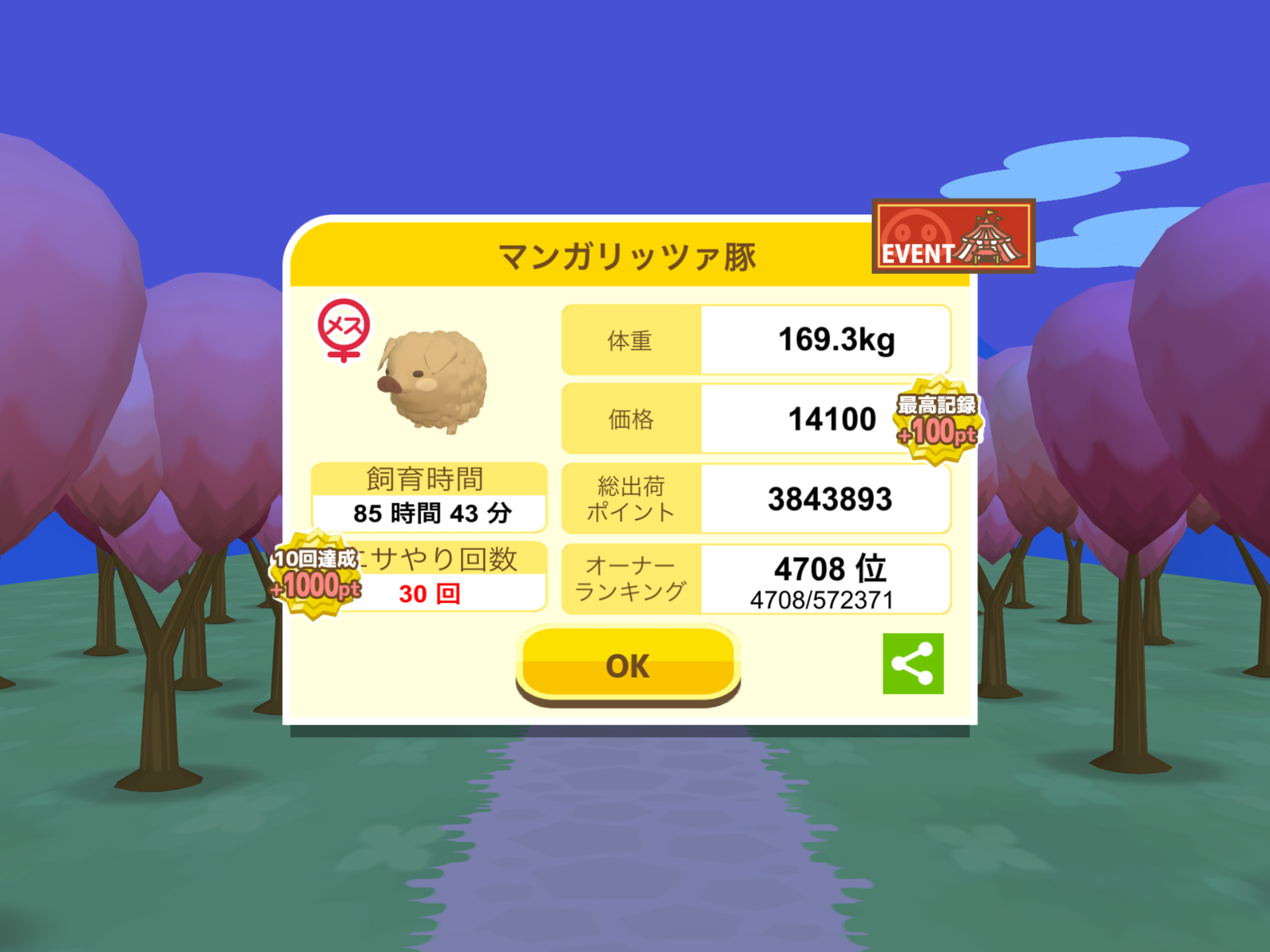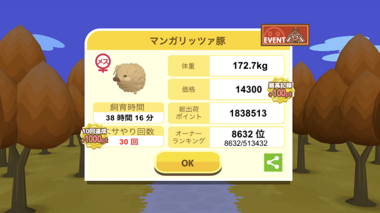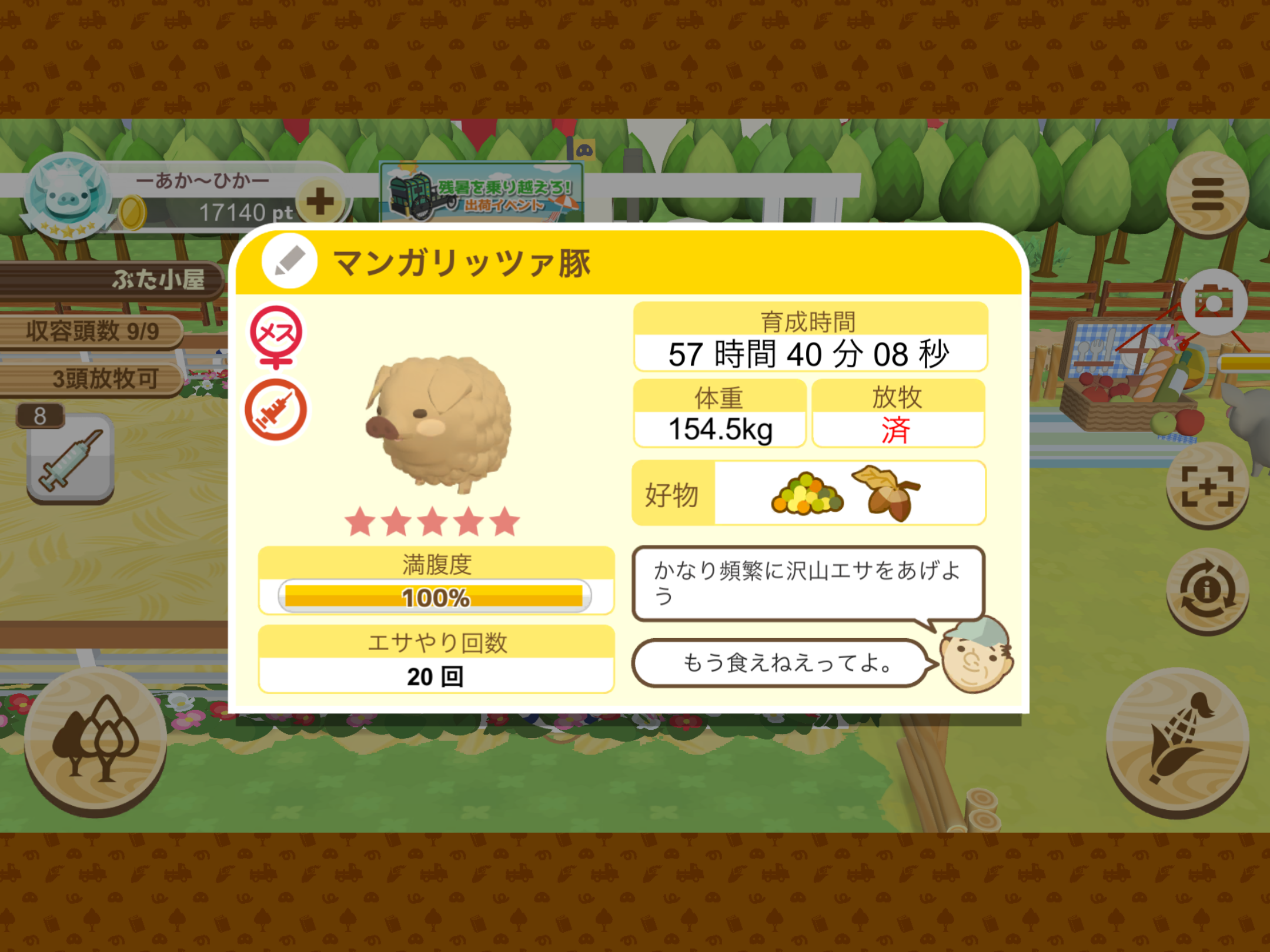 なお、もし図鑑コンプ済なら 更に基準出荷ptが高いぶた もいる。