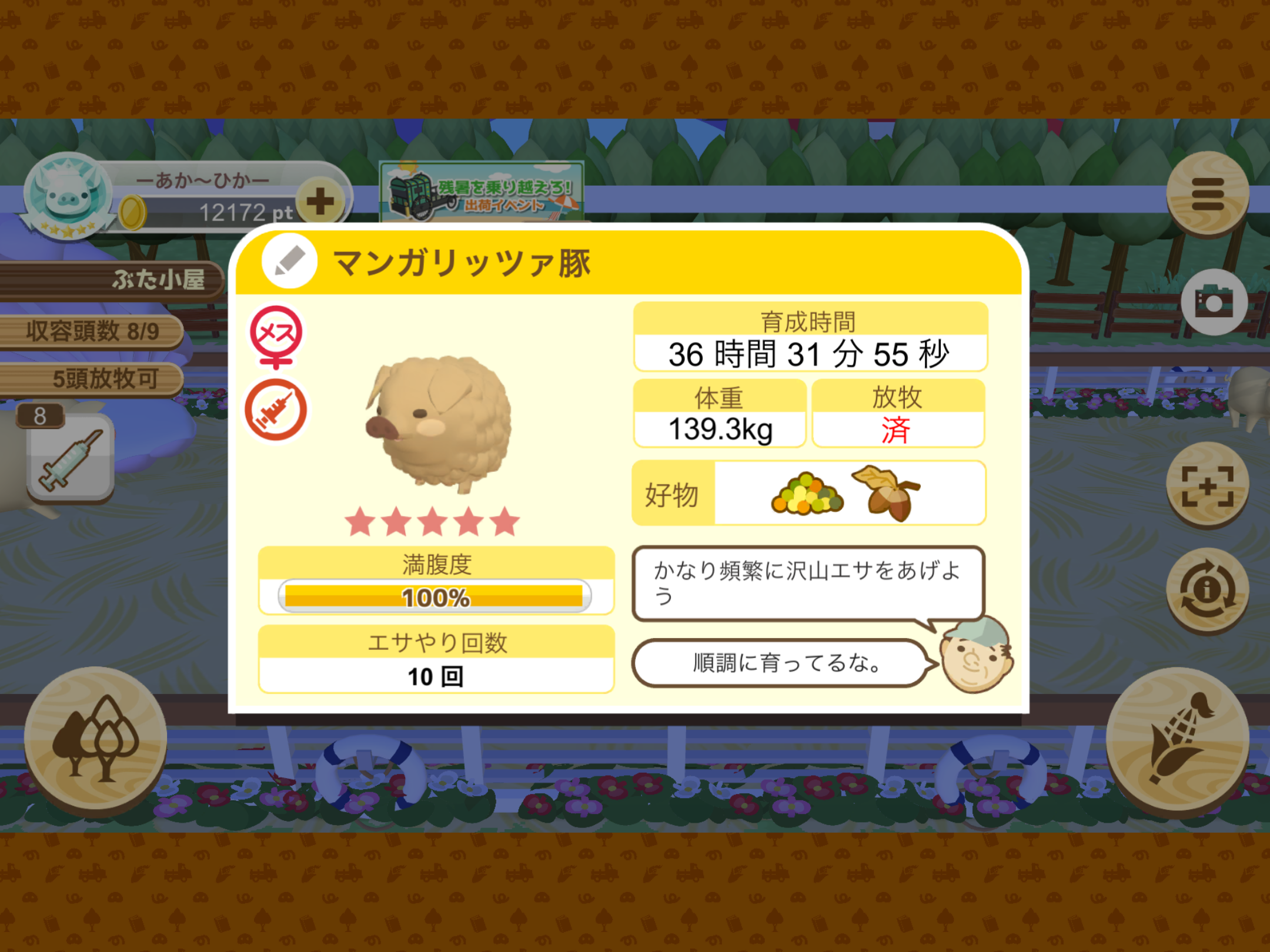 なお、マンガリッツァは基準出荷ptが10000ptのぶたの1種。(通常のぶた図鑑で全4種)