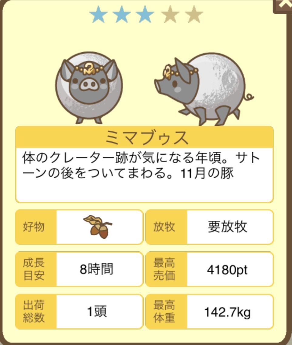 | レア度 | ★3 | 子ぶた色 | グレー |