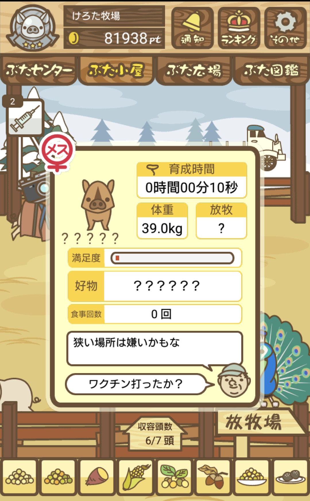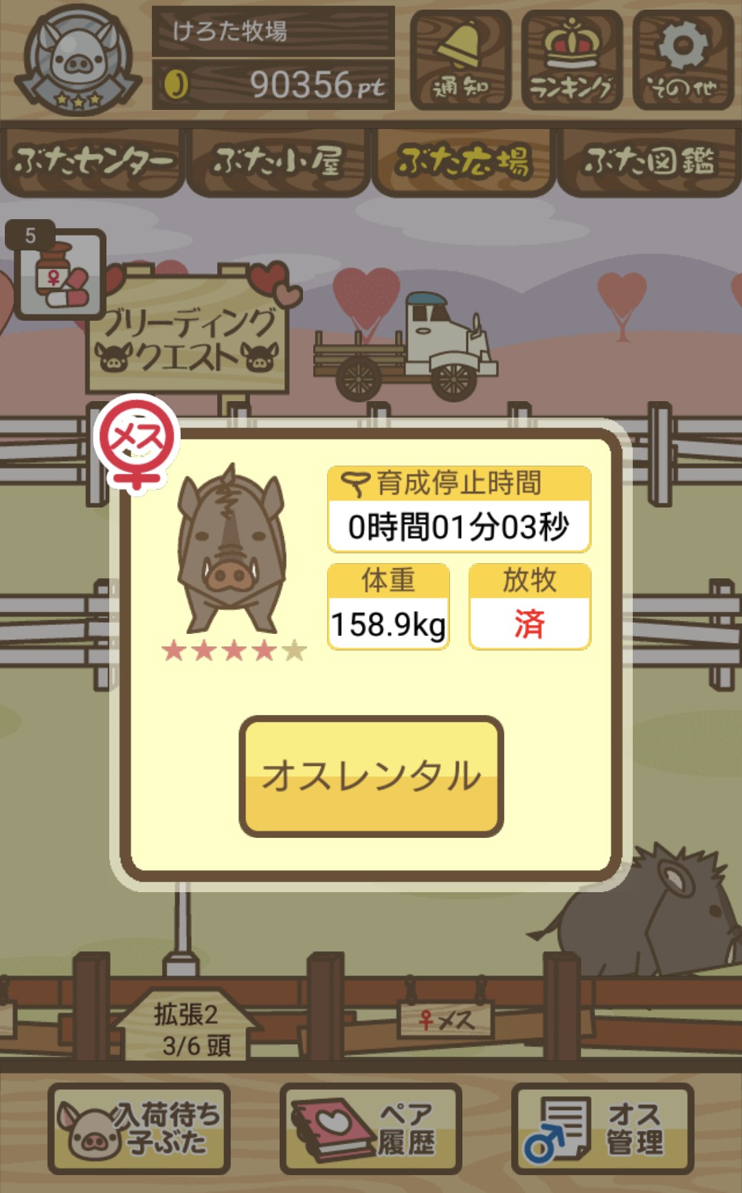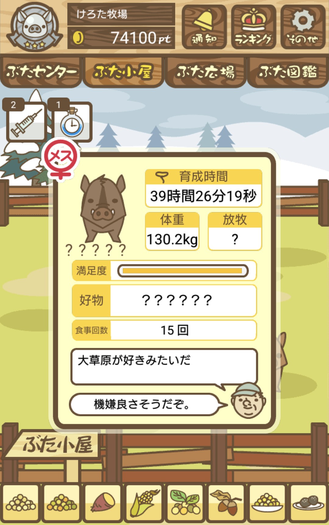 晴れて育成成功すると、土煙を上げながらぶた小屋を疾走する姿が見られるぞ!