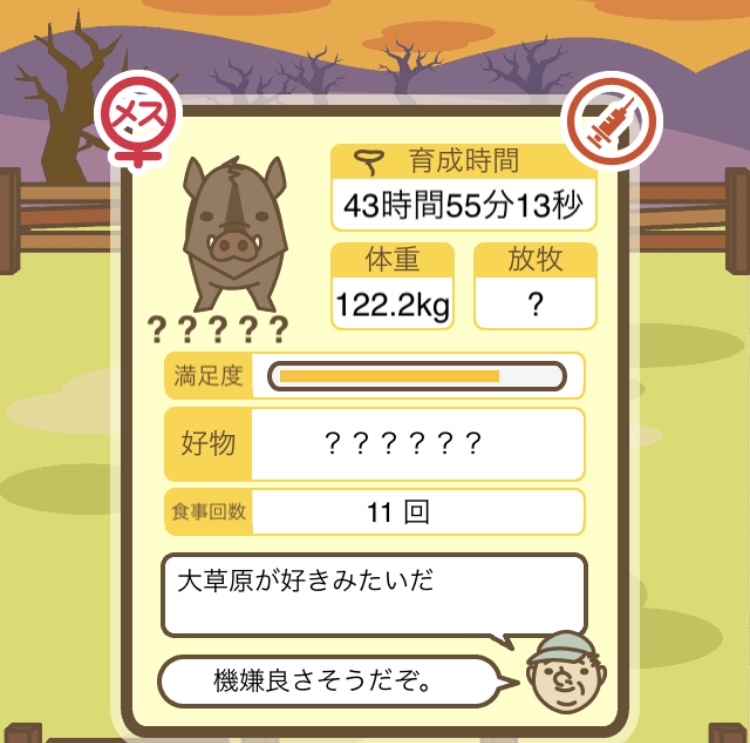 また、上記のエサ回数が足りていないとただの160kg超えのイノシシになってしまう。
