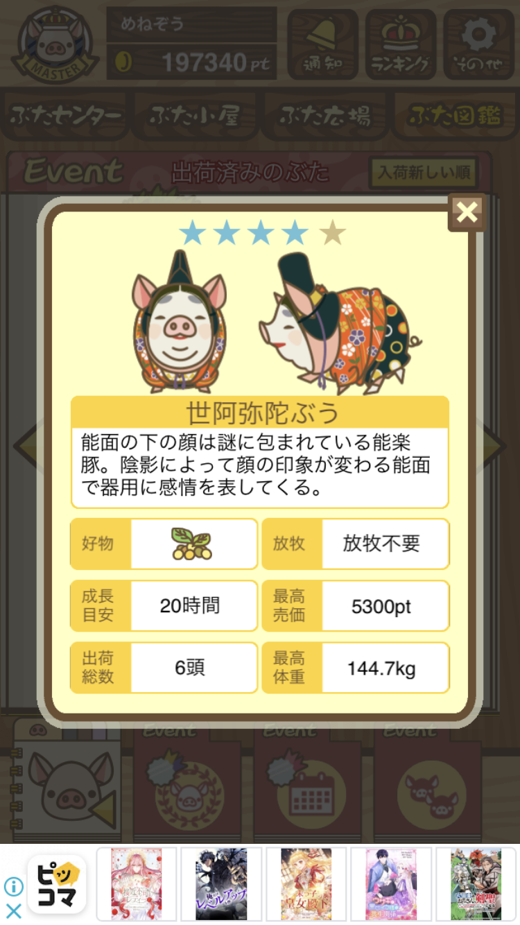 日本伝統芸能ぶた ぶたろう冠者・猪川豚十郎 と同タイミングで追加された。