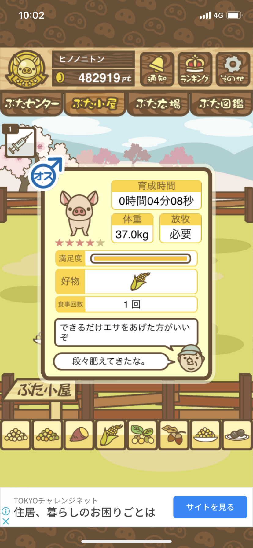 | 成長 時間 | 段階 | おがくず | ノーマル | わらの床 |