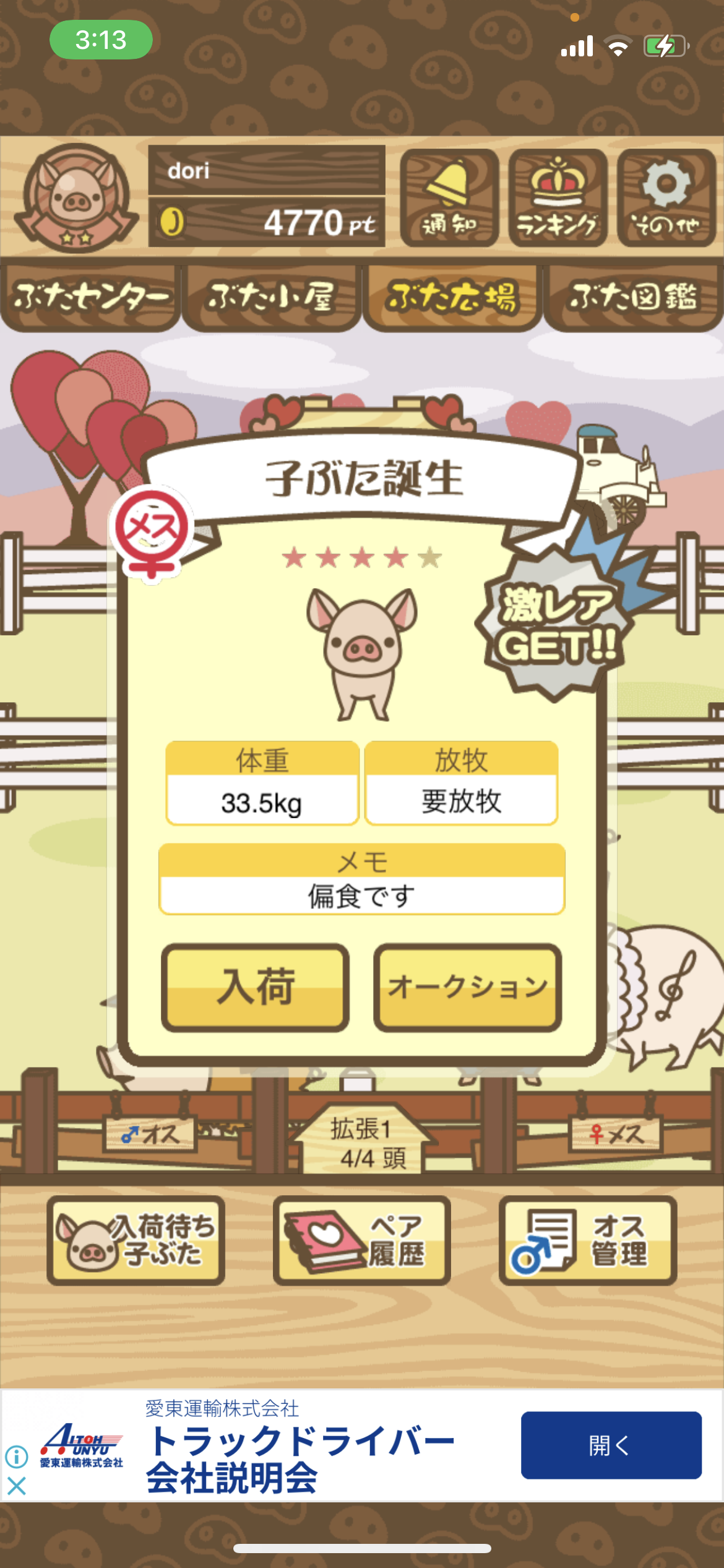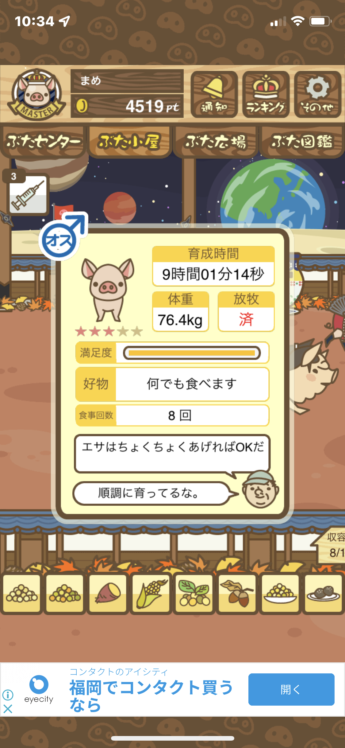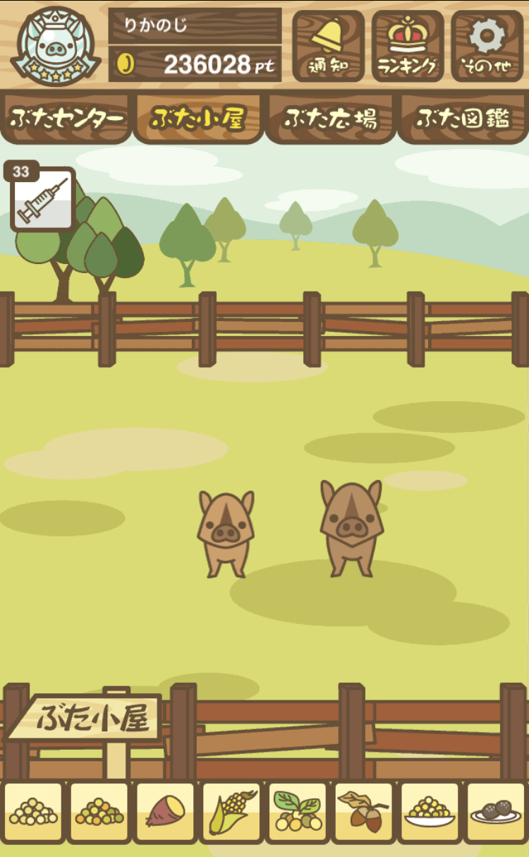 | Lv4 成豚 | ![]() 見事な雑種だ | ![]() どっしり |
