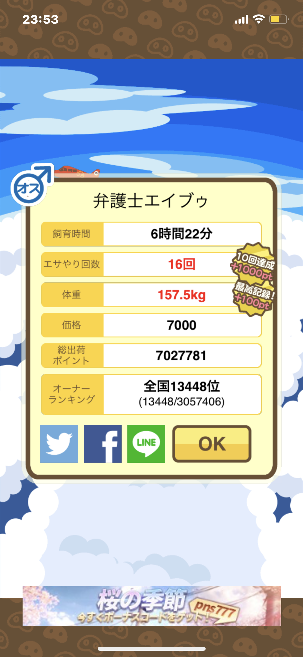 ちなみに、★6ではないので初出荷でも日刊ようとん場の号外には載らない。