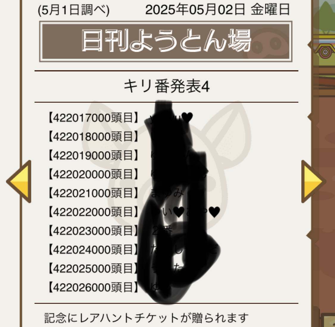 | 【情報提供】エサ間隔 | 21/05/02 06:50:09 | 26 |