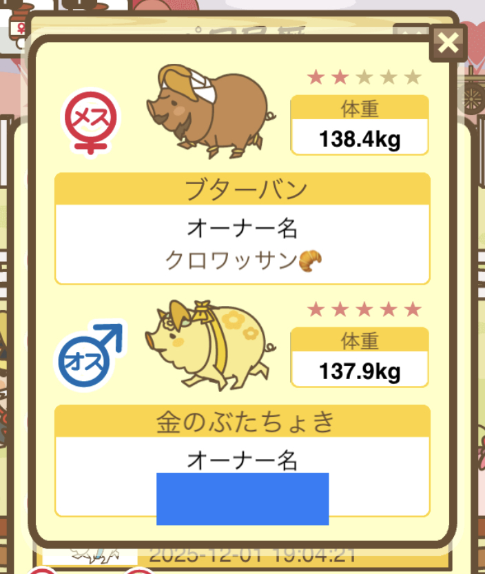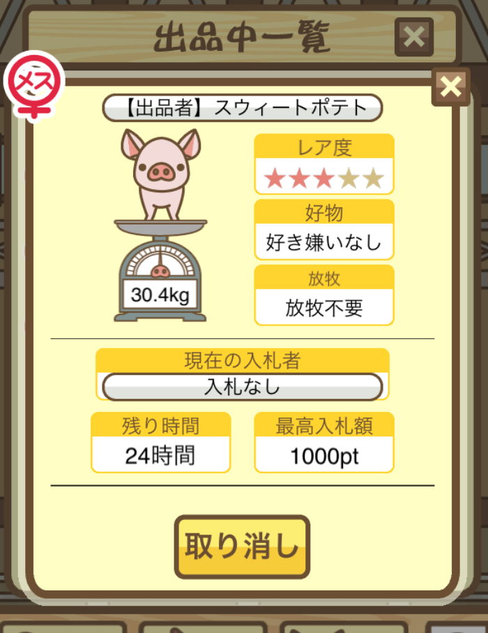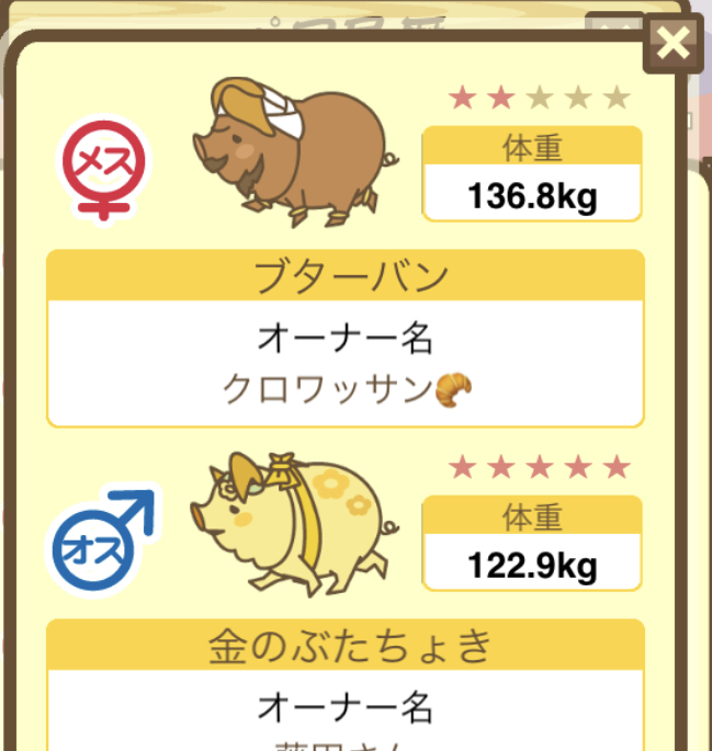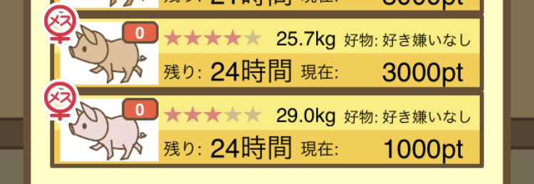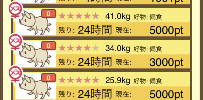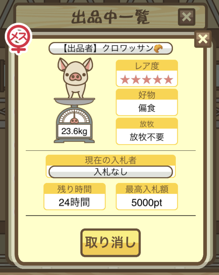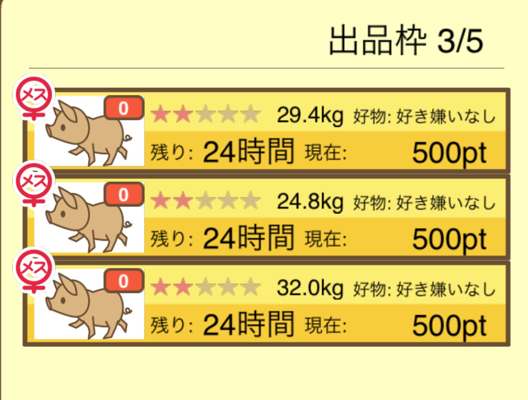 - そもそもですが、図鑑に登録されていないぶたはオークションに表示されないので注意!