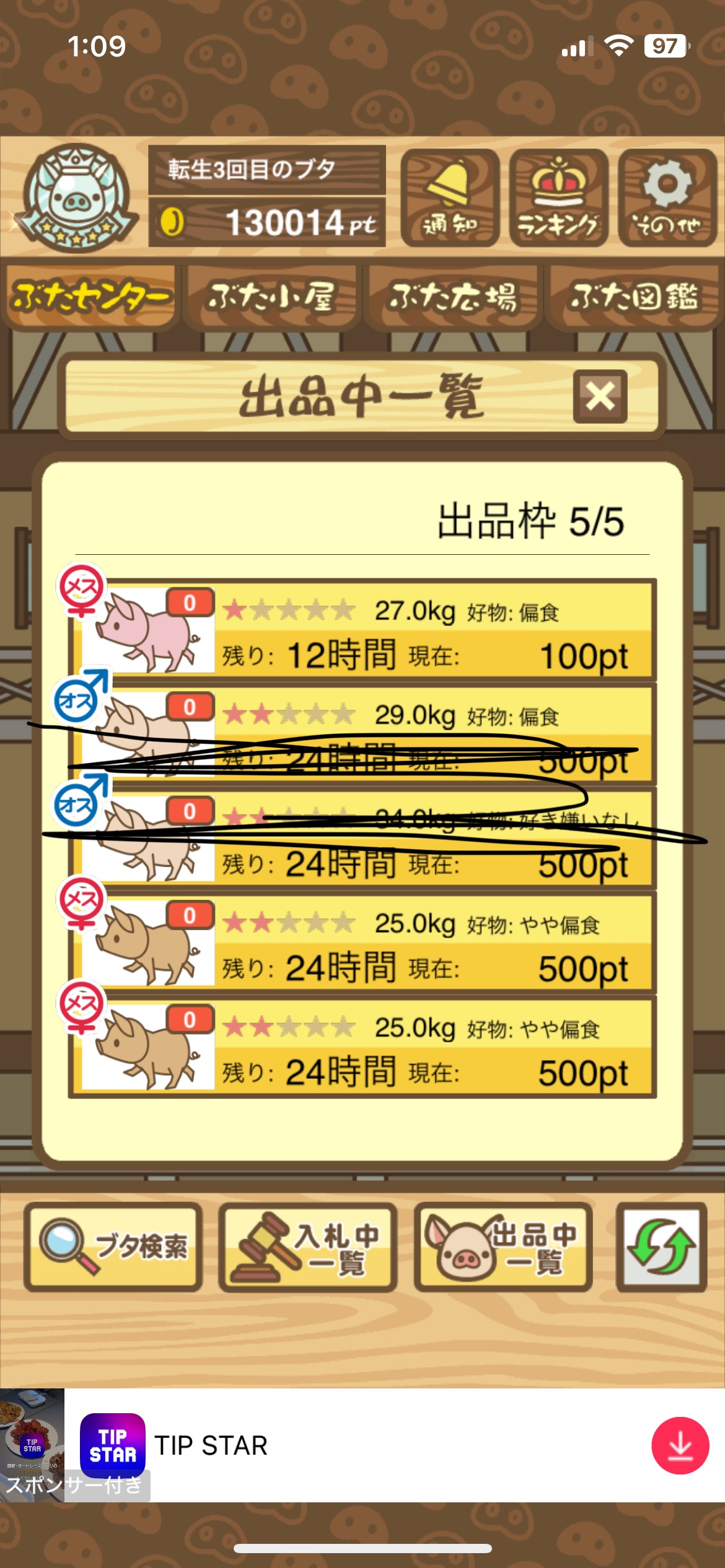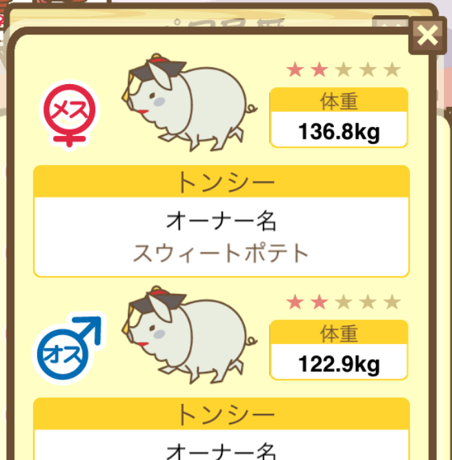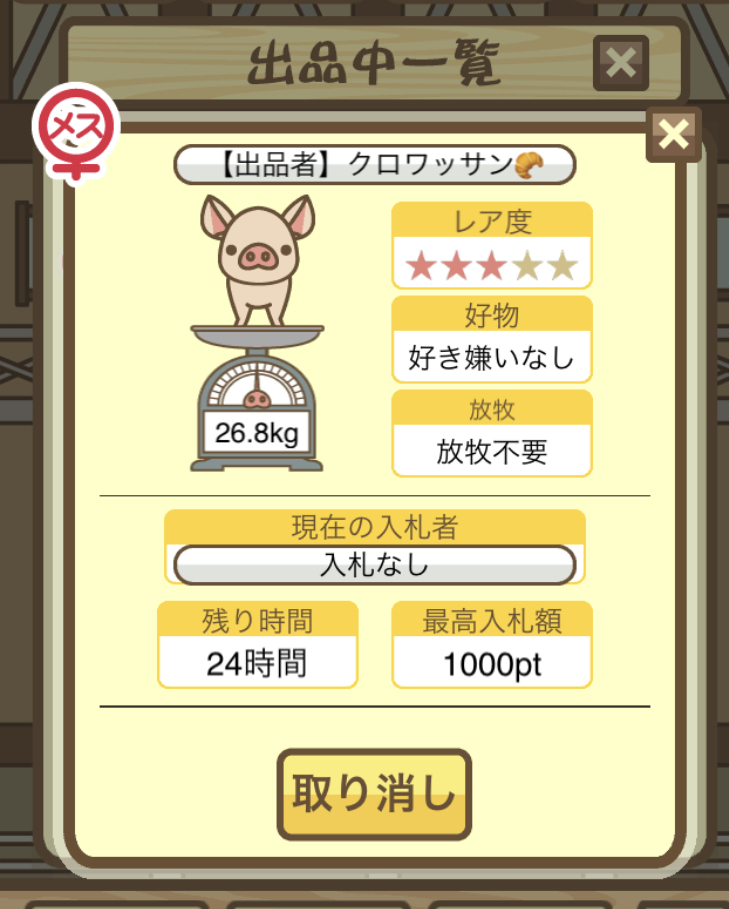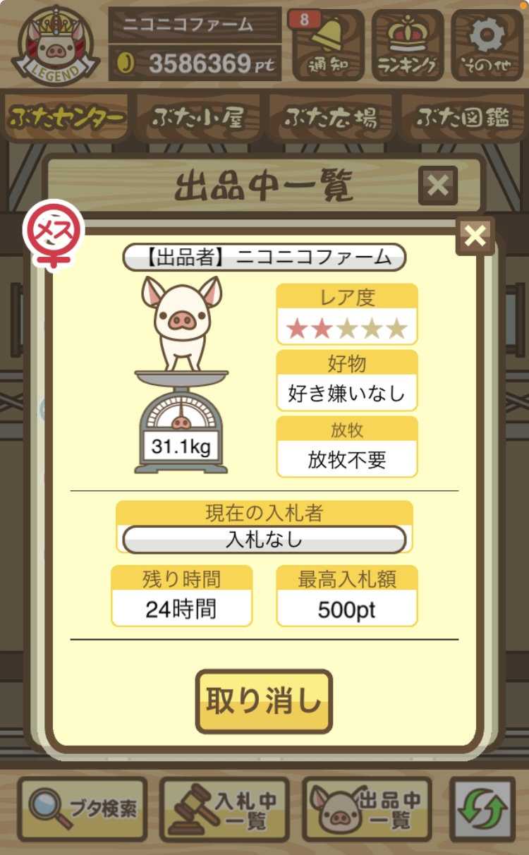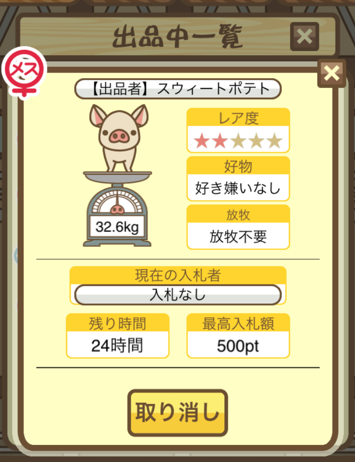 - そもそもですが、図鑑に登録されていないぶたはオークションに表示されないので注意!