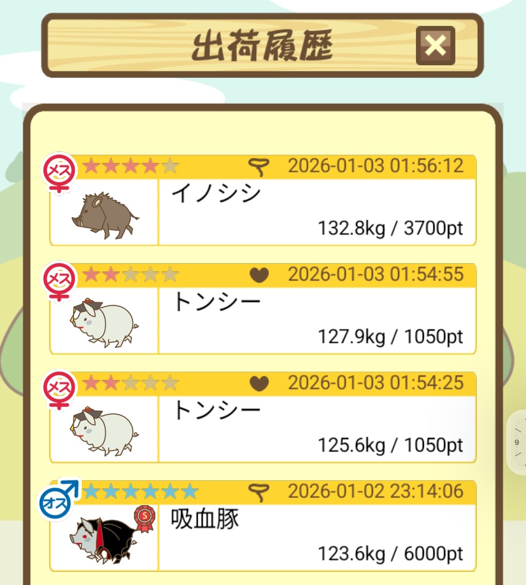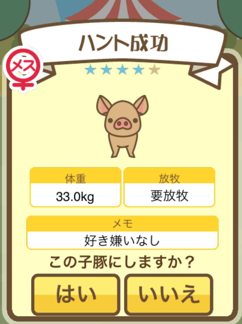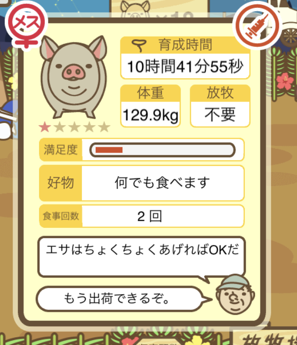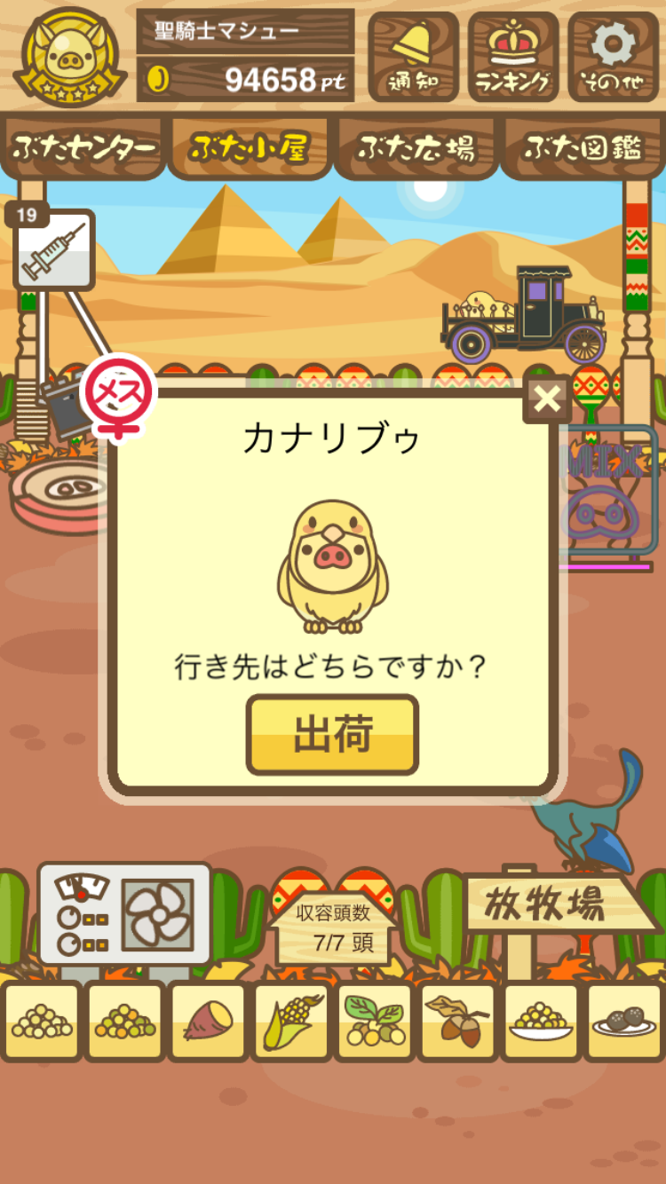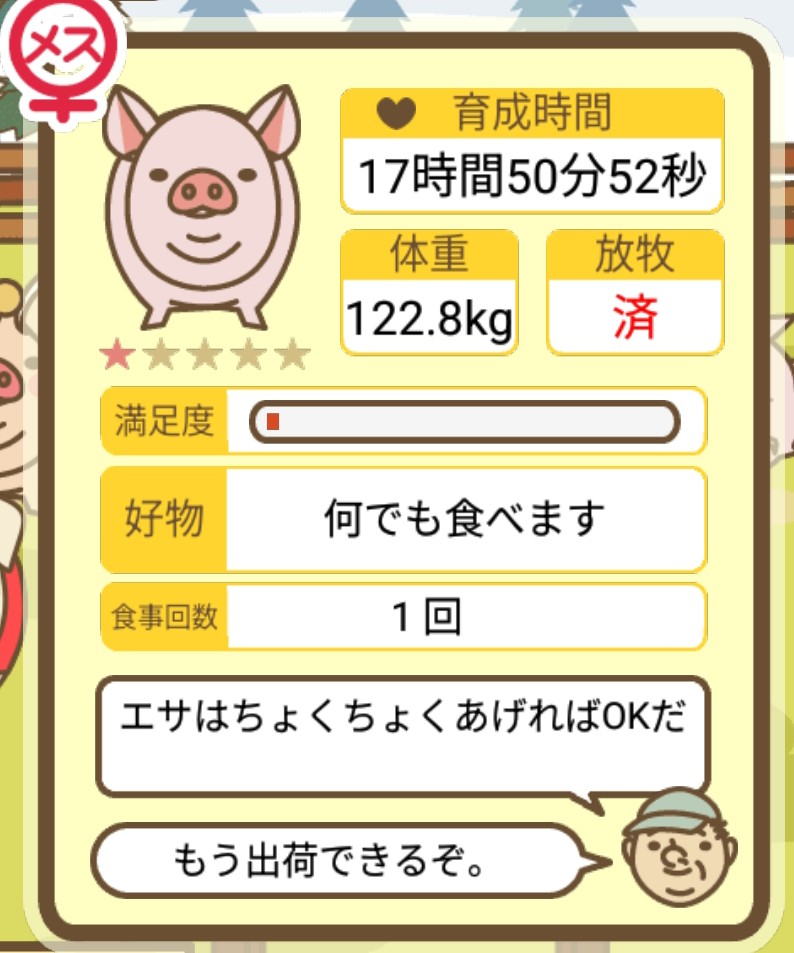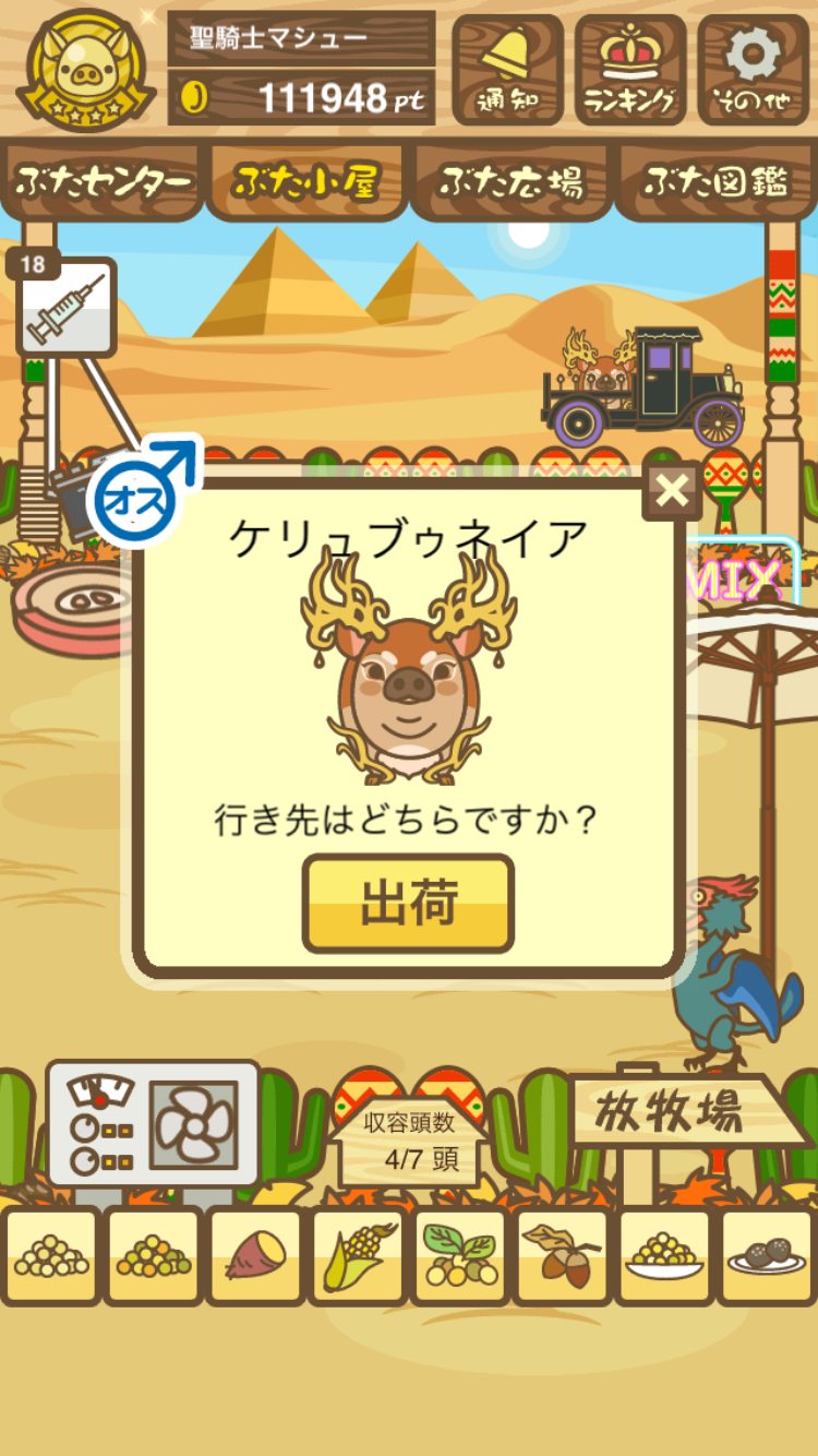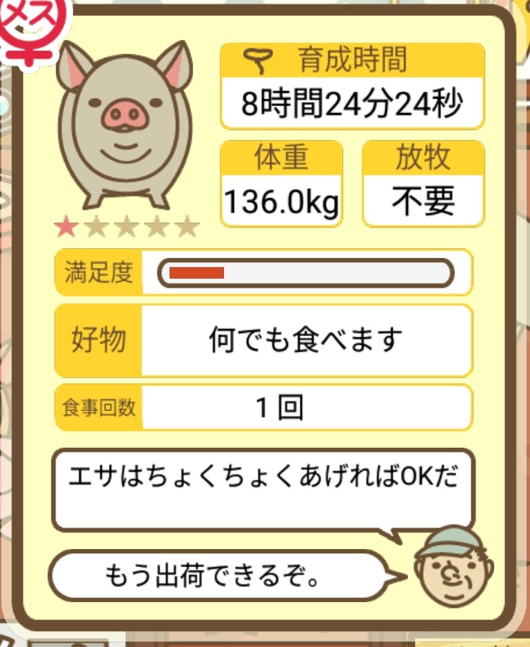 また、無事育成成功した際には、出荷前のぶたがトラックに乗っているスクショではなく、