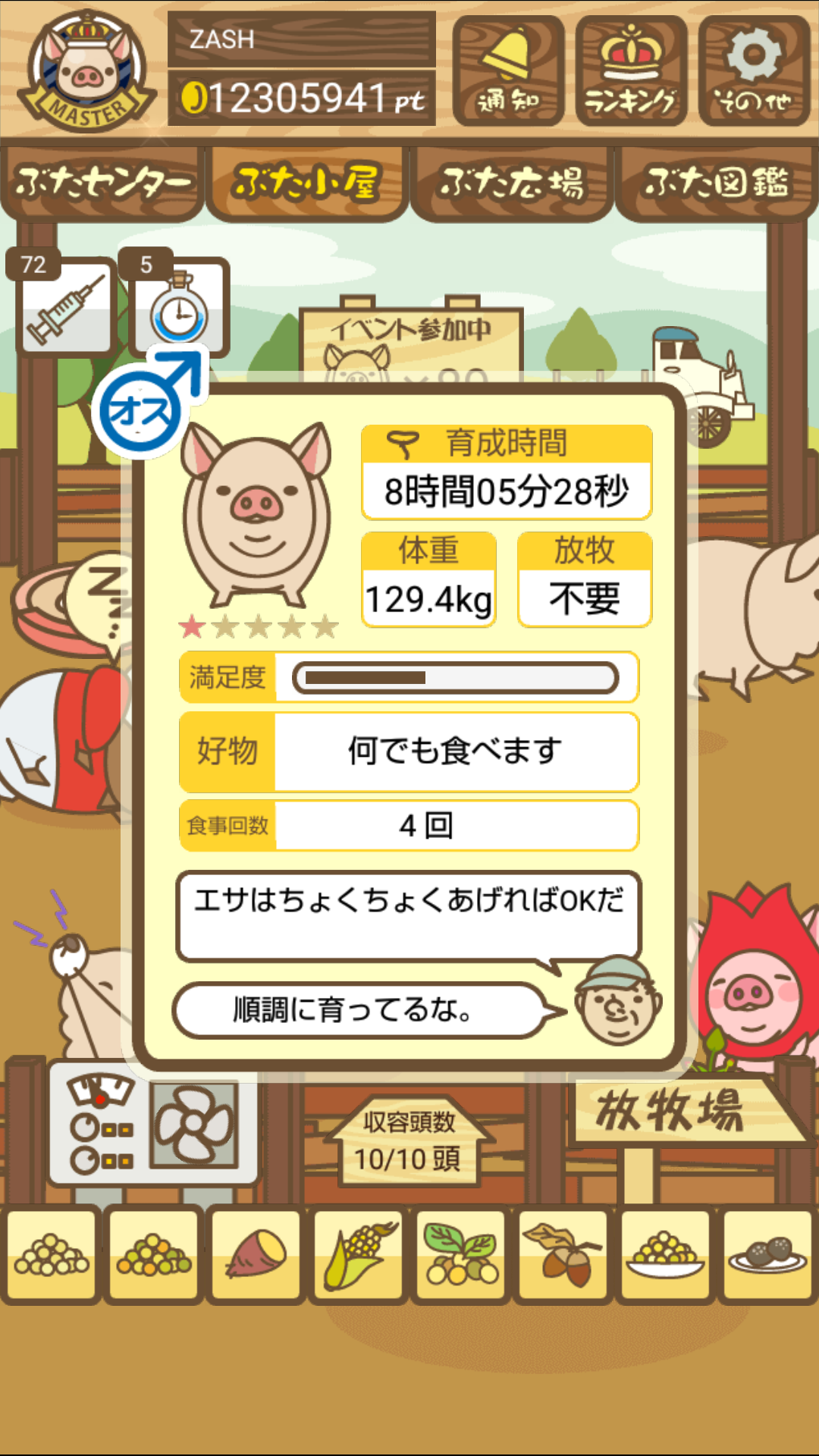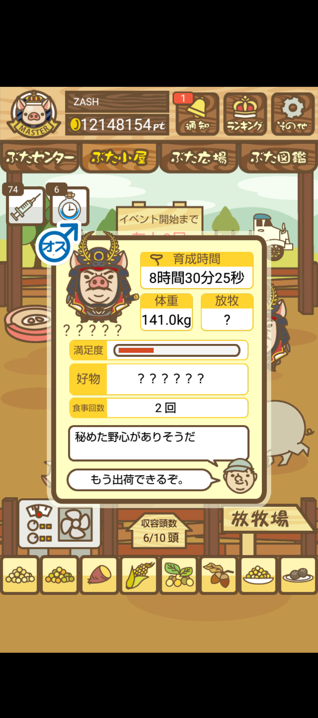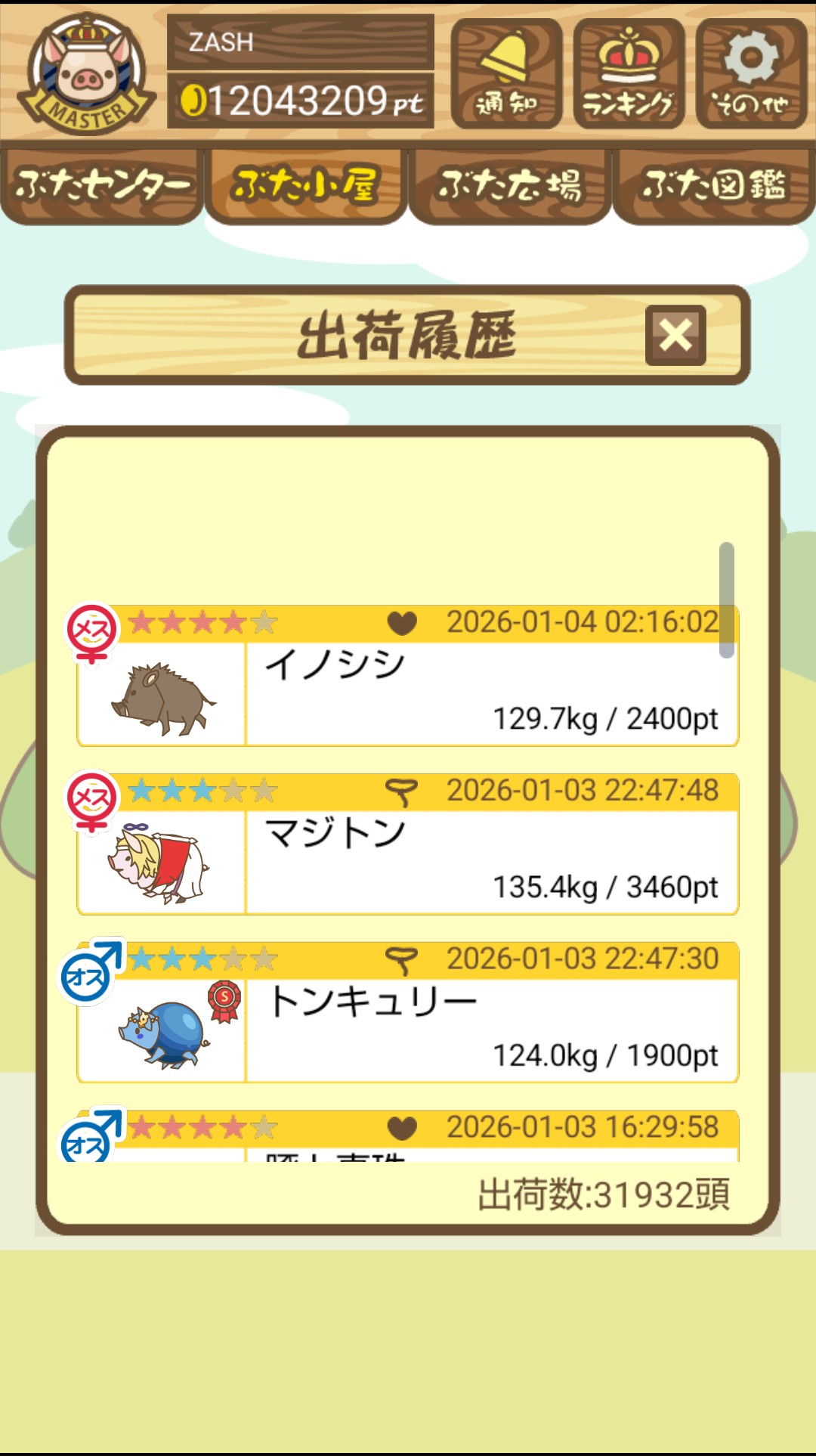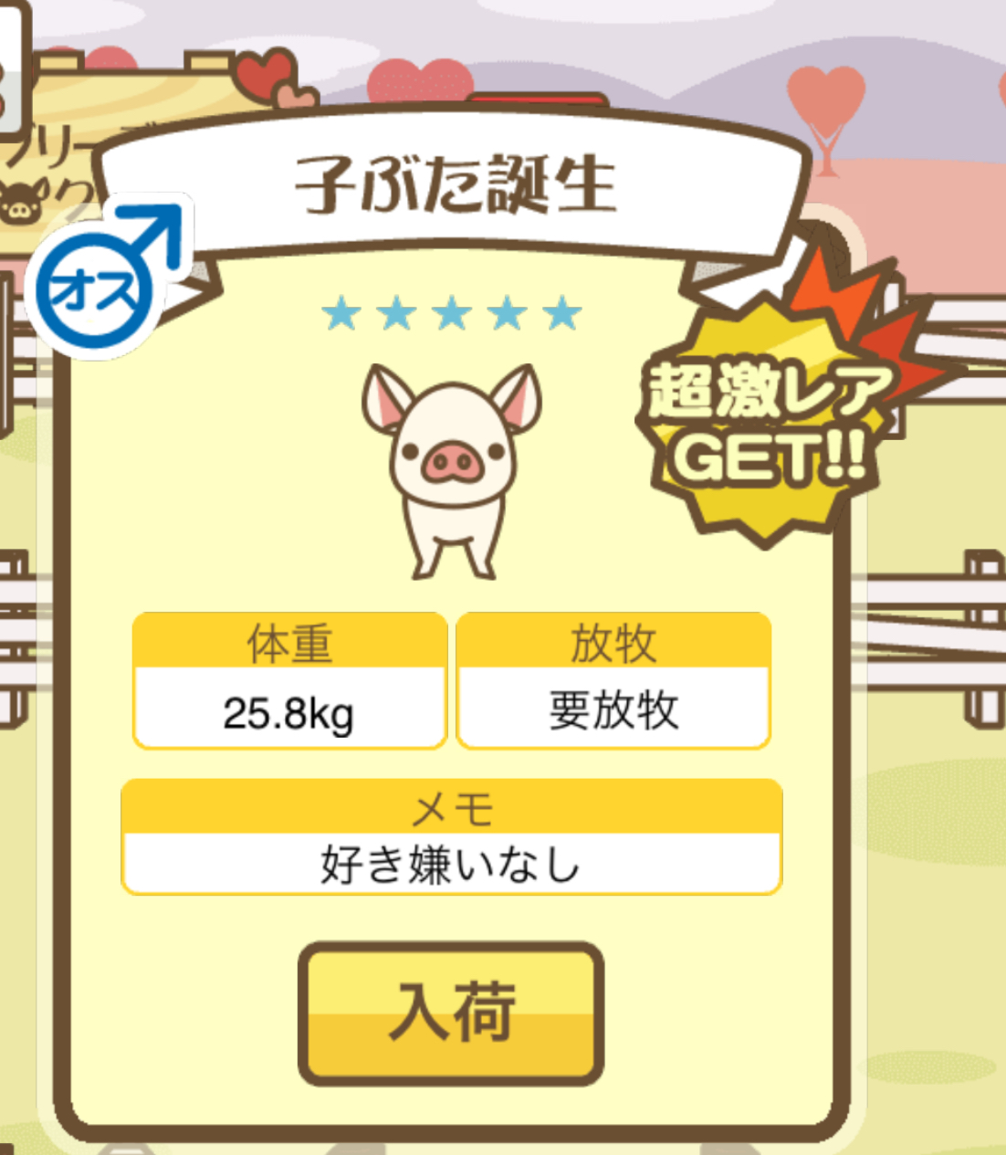 また、無事育成成功した際には、出荷前のぶたがトラックに乗っているスクショではなく、