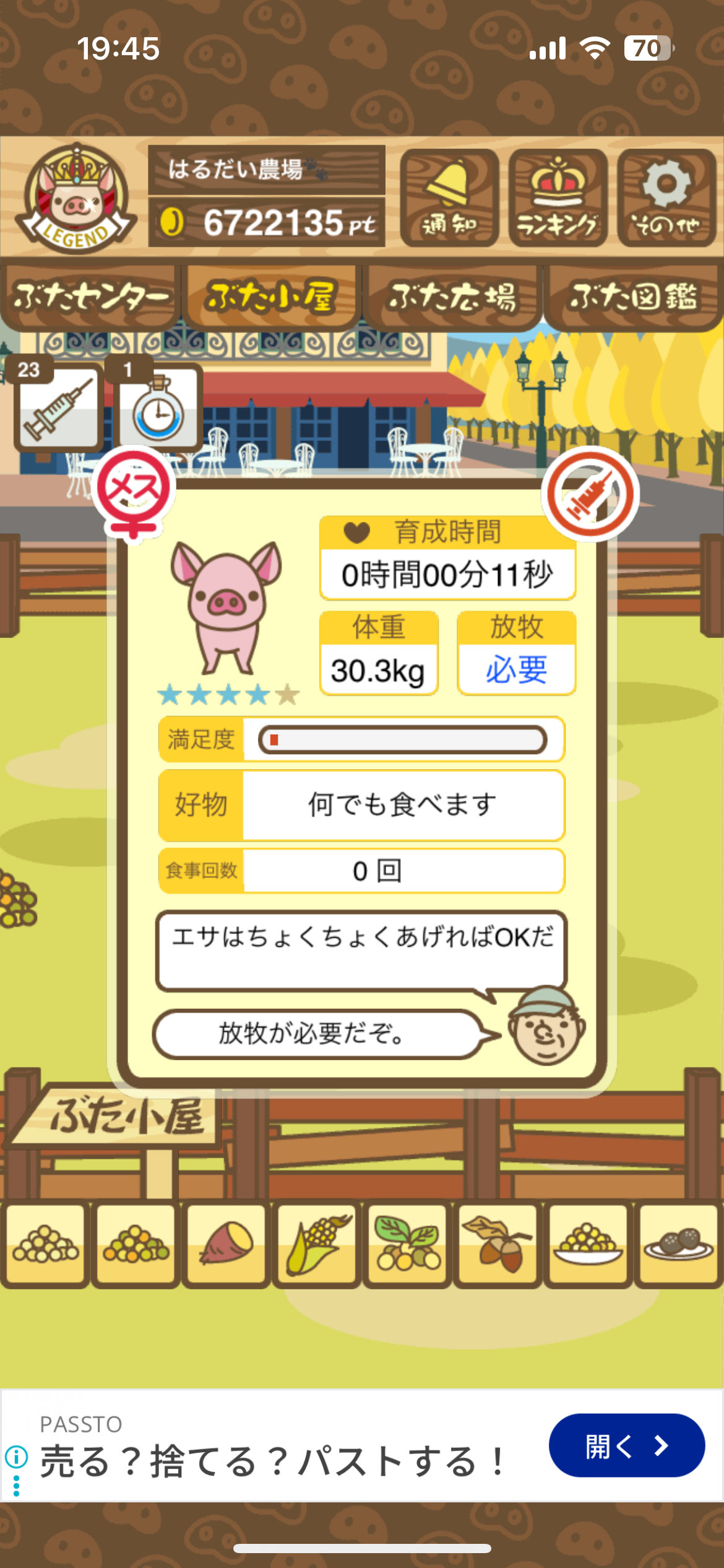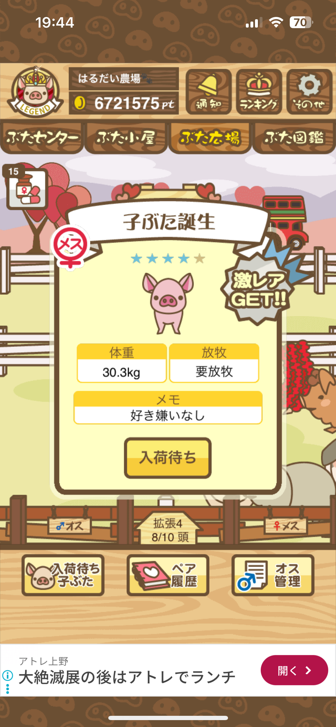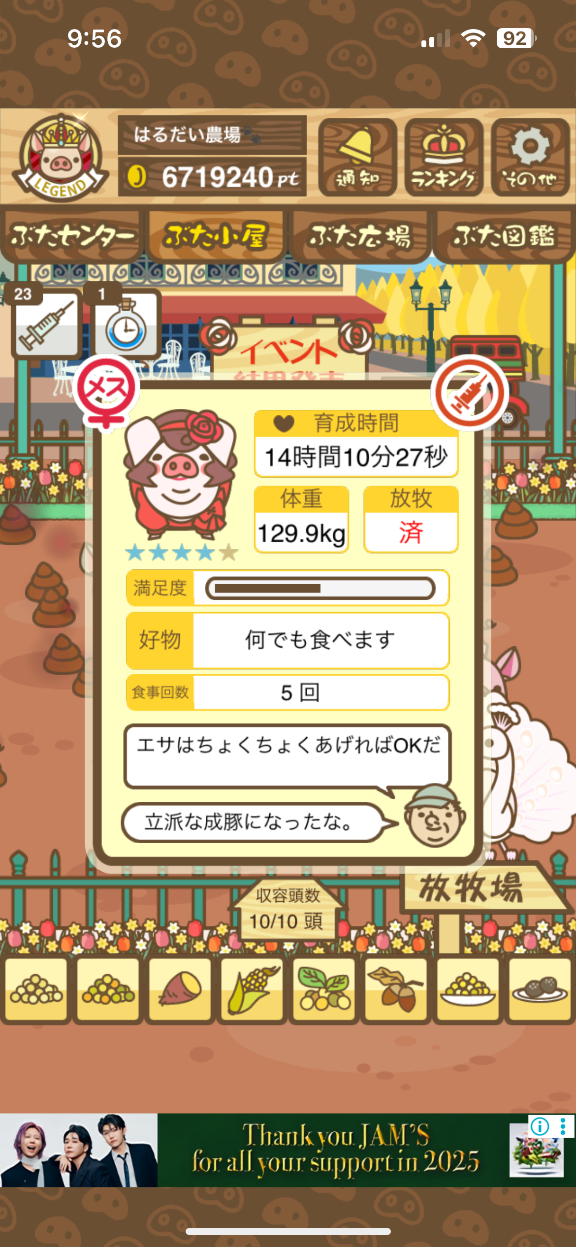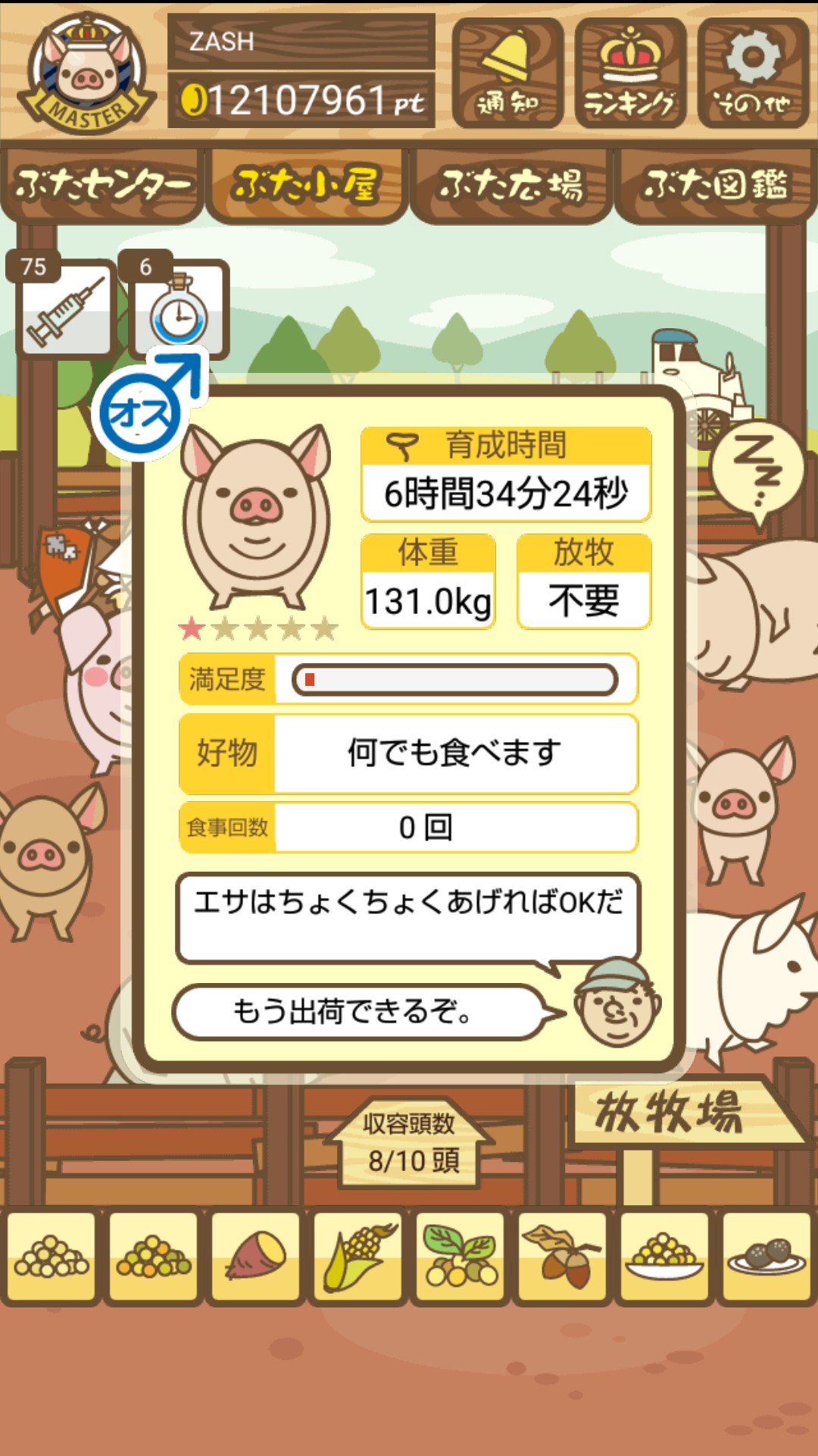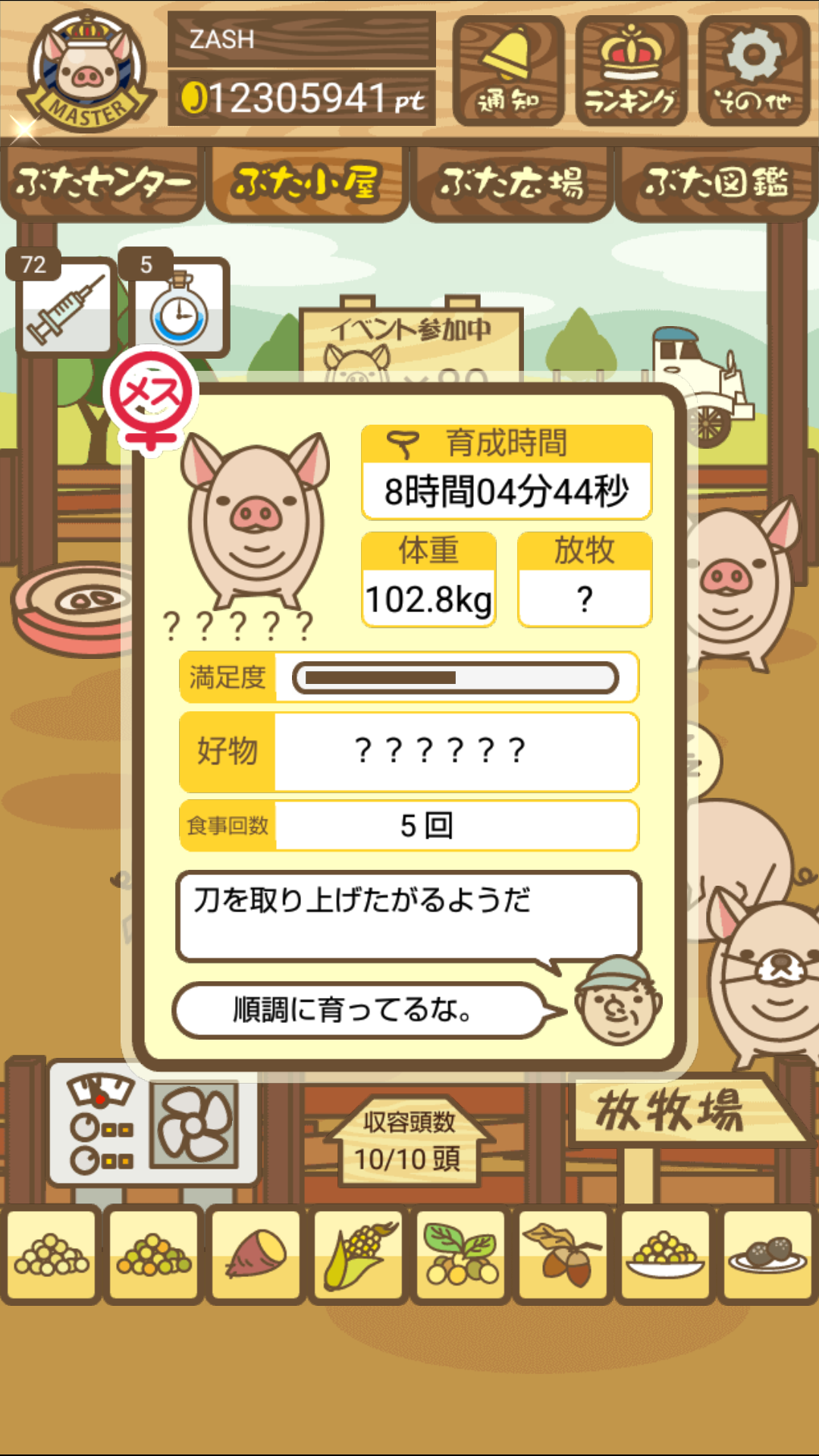 また、無事育成成功した際には、出荷前のぶたがトラックに乗っているスクショではなく、