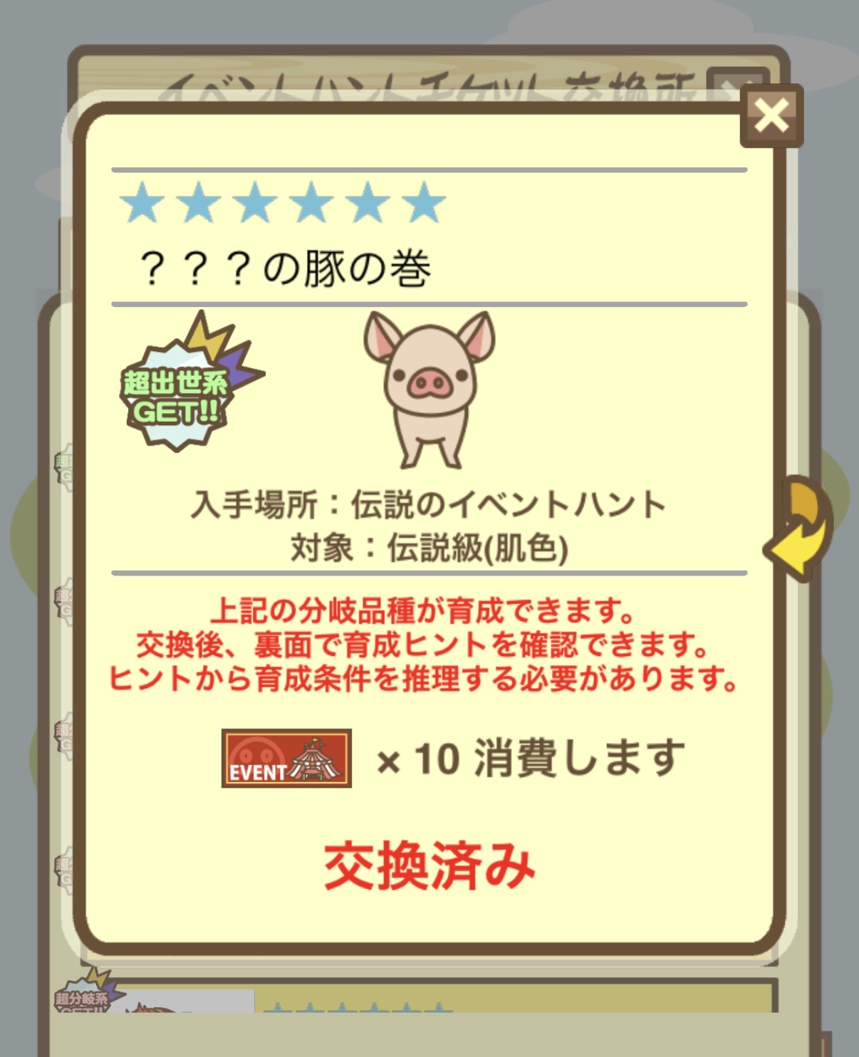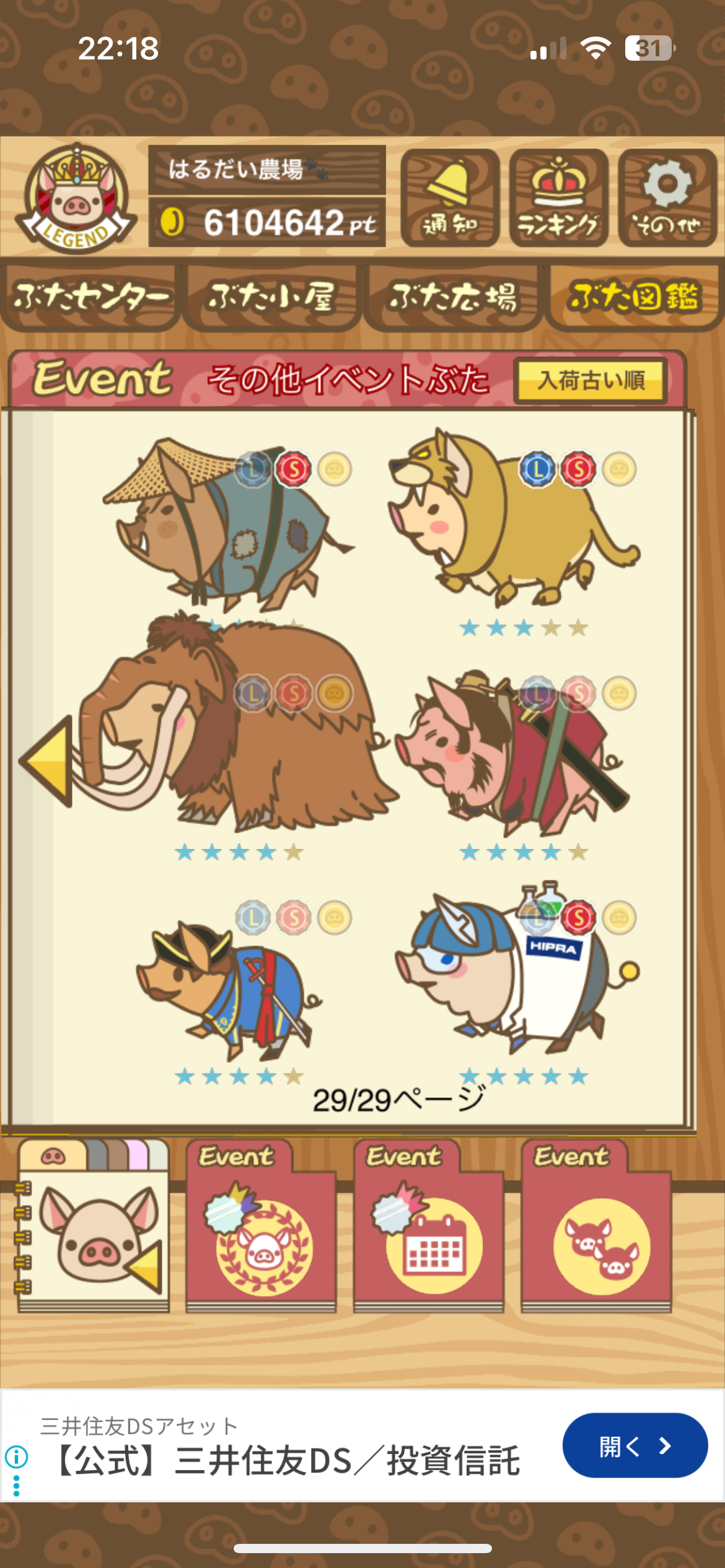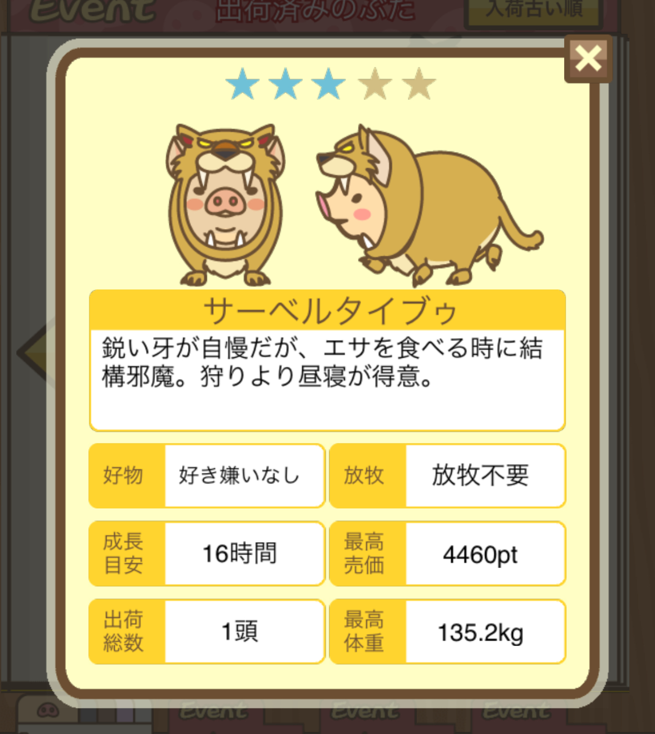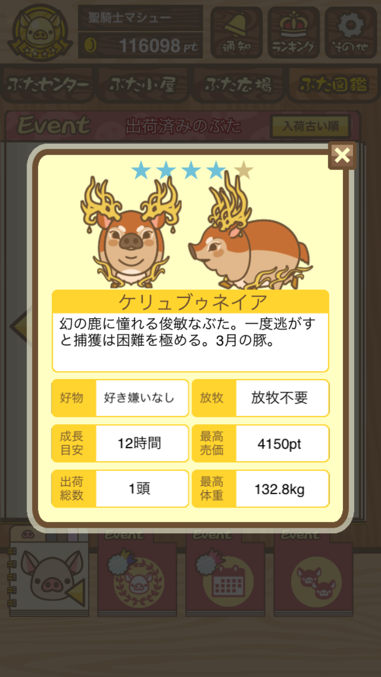 イベントハントぶた図鑑 や 伝説のイベントハント のページに情報があります。